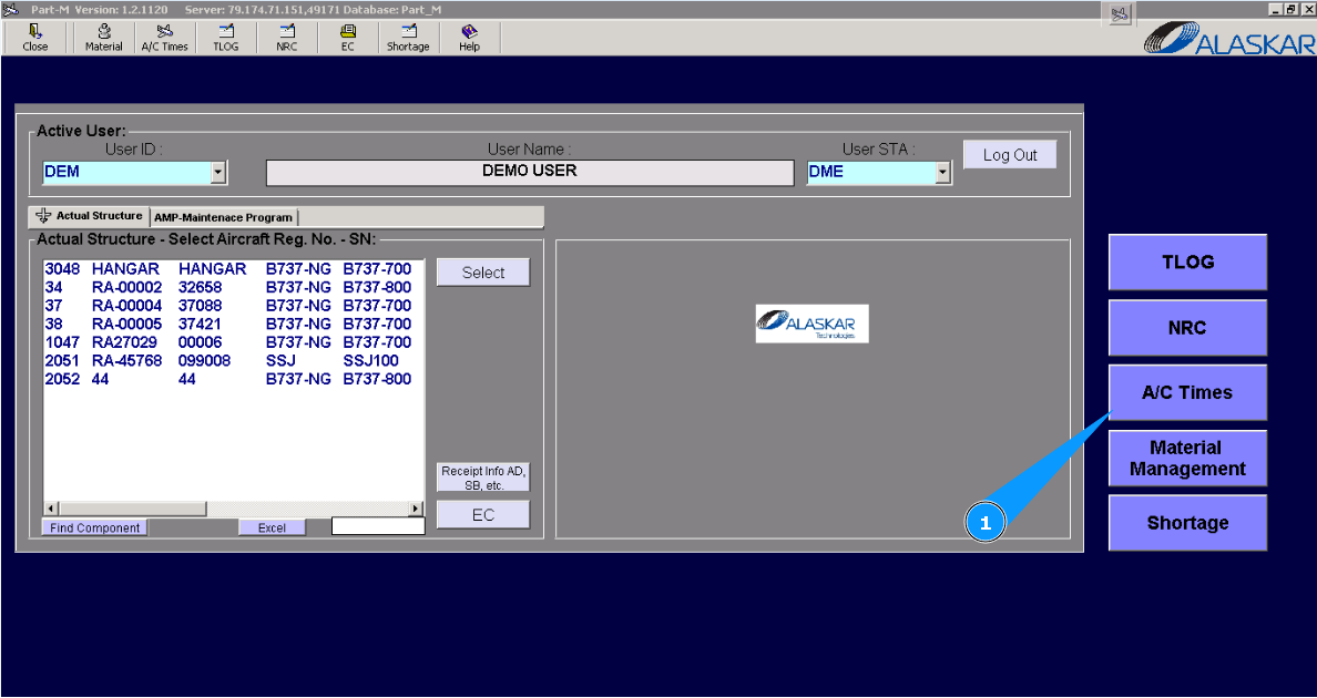 1. For checking engine utilization during the flight of components, please go to submodule "AC Times".