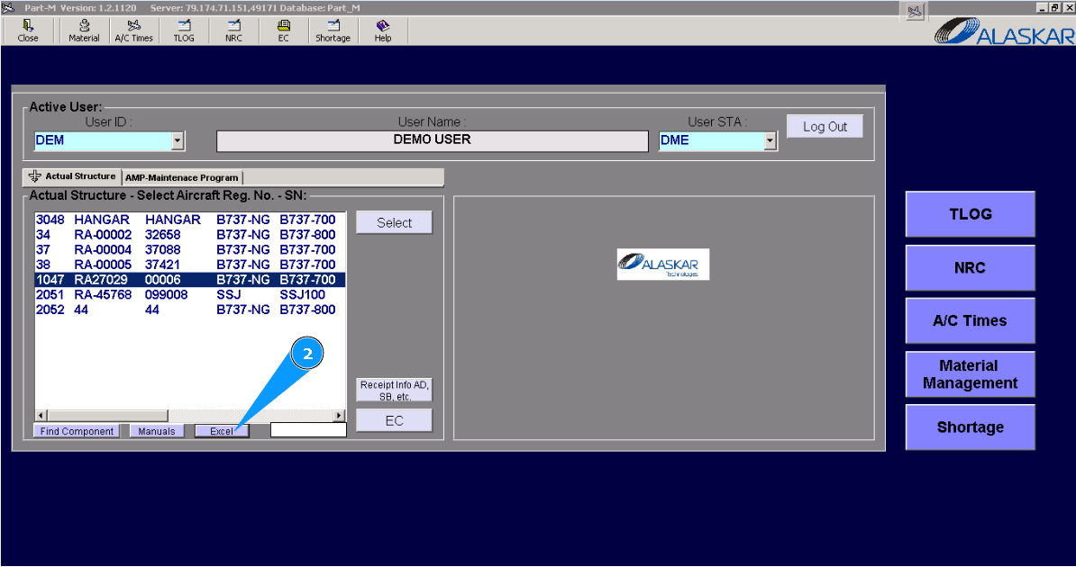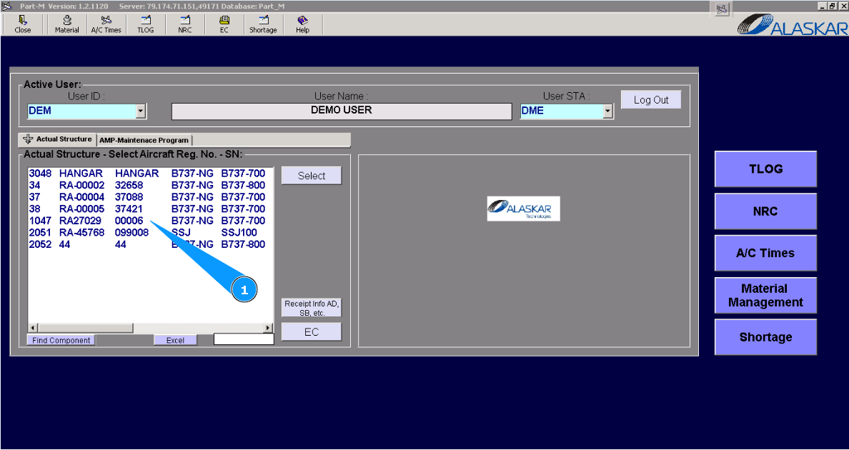 1. For checking aircraft general information, select the aircraft registration number in the window "Aircraft Structure-Select Aircraft Reg.№-SN".