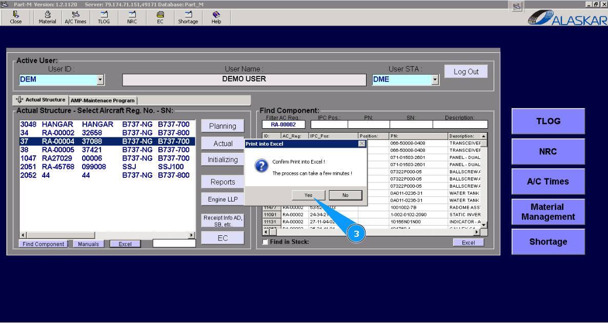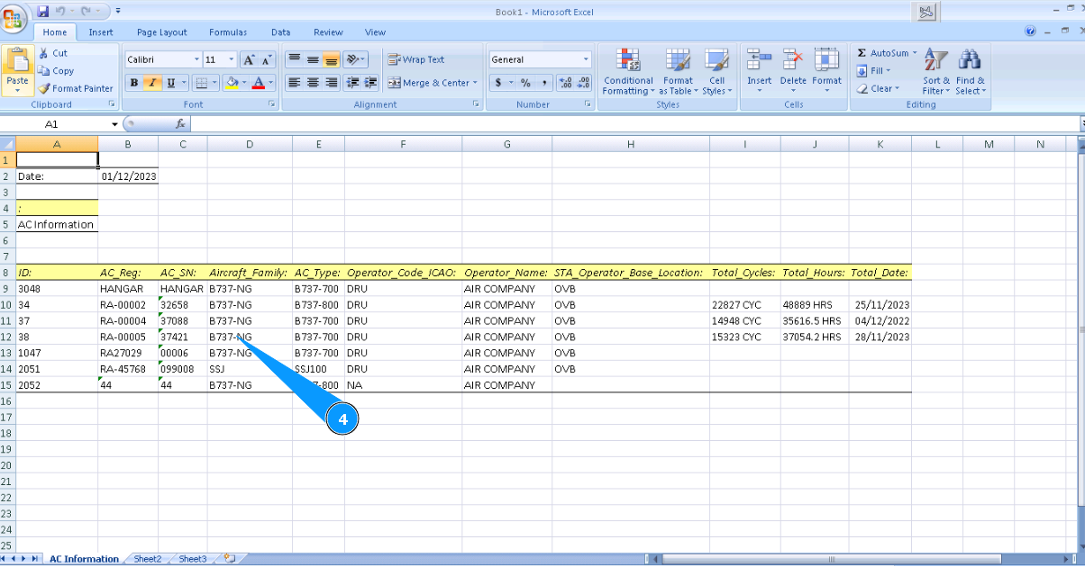 4. Check that the Excel report is created with necessary aircraft information.