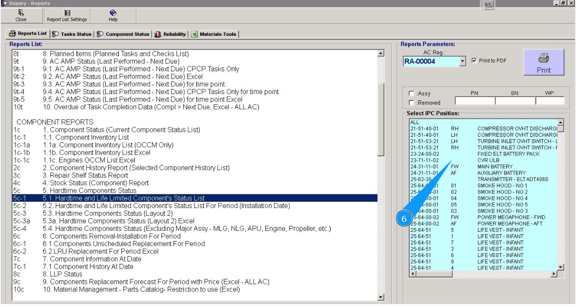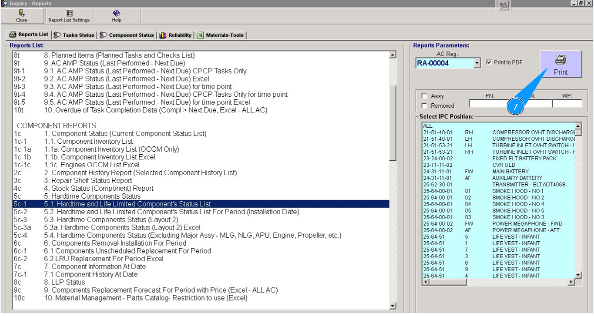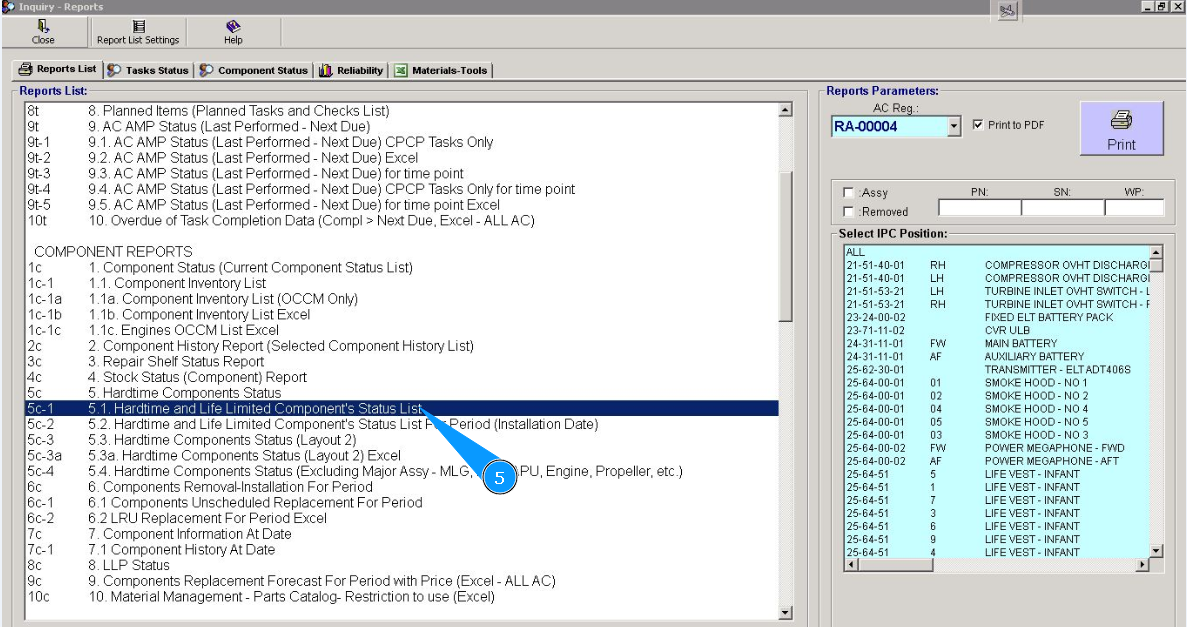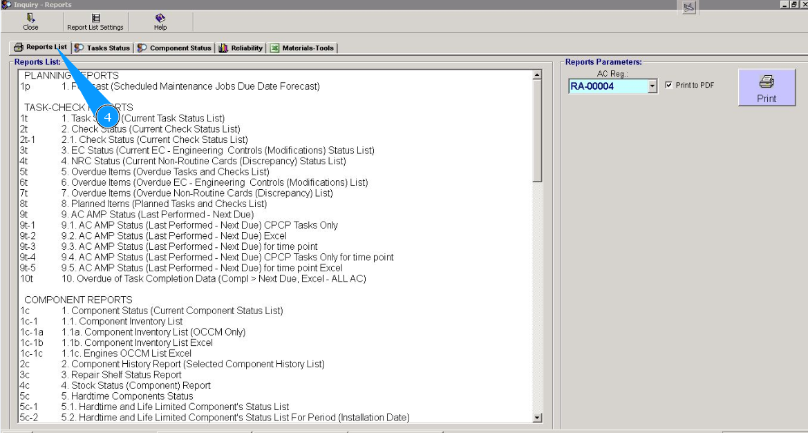 5. Select the corresponding report by scrolling through the "Reports List". Click on the necessary line.