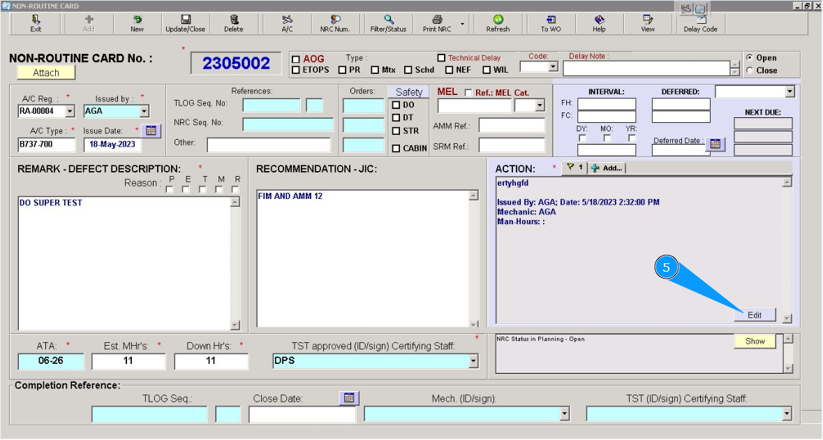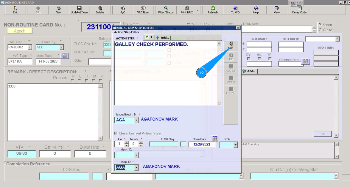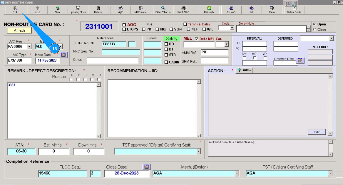 13. Click on the button "Exit", to close the edit mode of the window "Non-Routine Card".