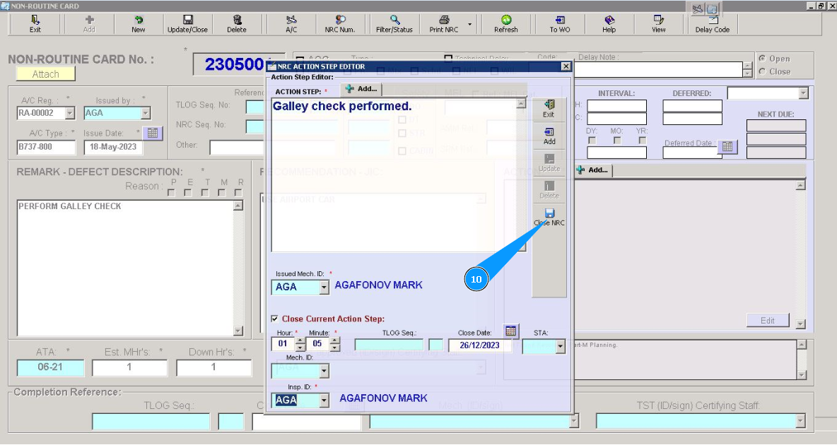 10. Click on the button "Close NRC", to close simultaneously step and whole NRC.