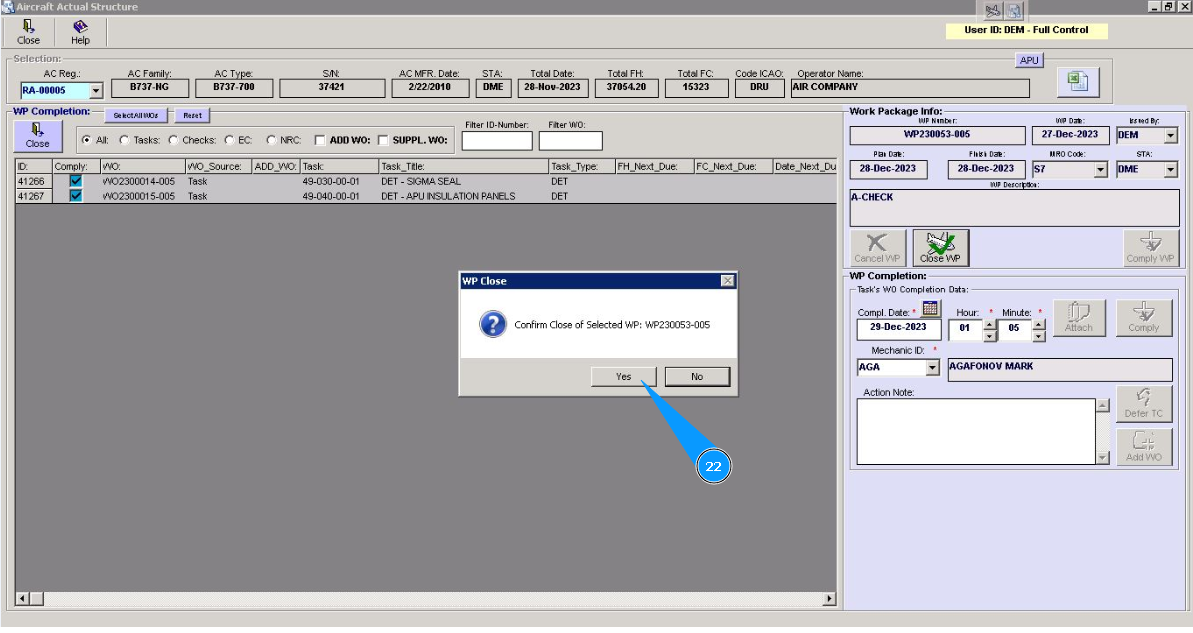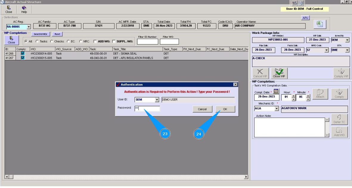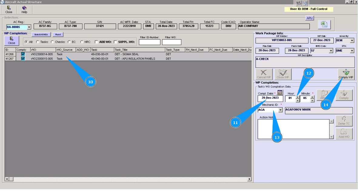 13. Enter the login of the certifying staff in the field "Mechanic ID".