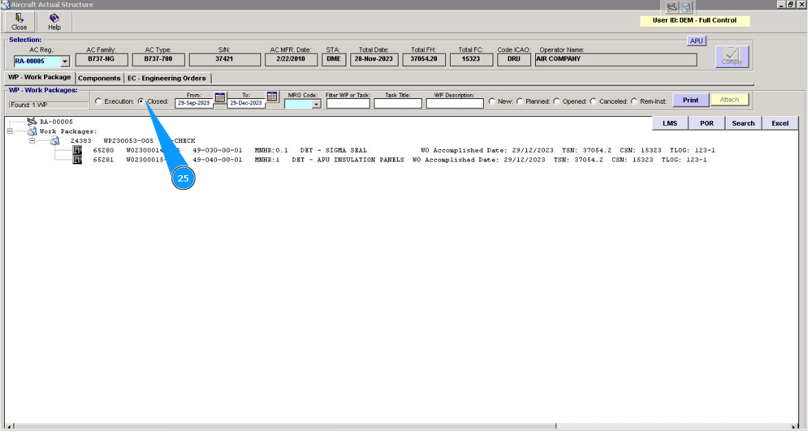 25. Check that WP is closed. Return to the tab "WP-Work package" and set filter "closed ".