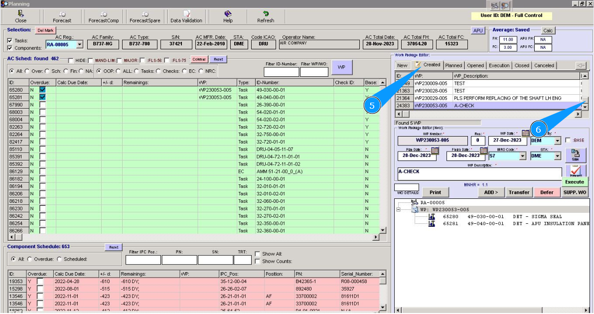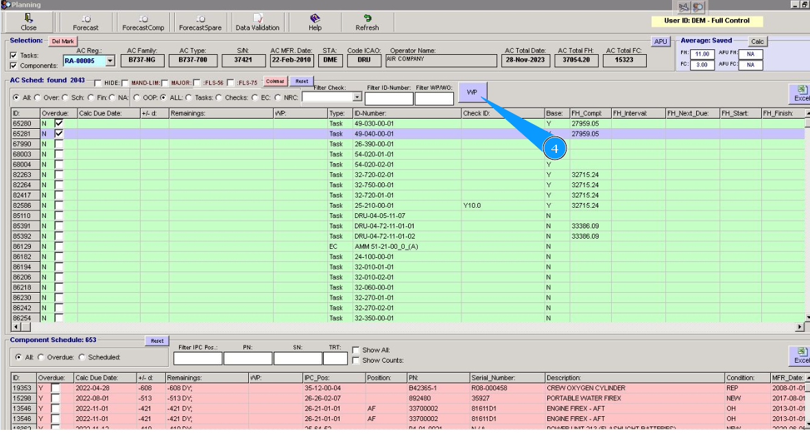6. Find the necessary WP for control by scrolling through the window "Work Package Editor".