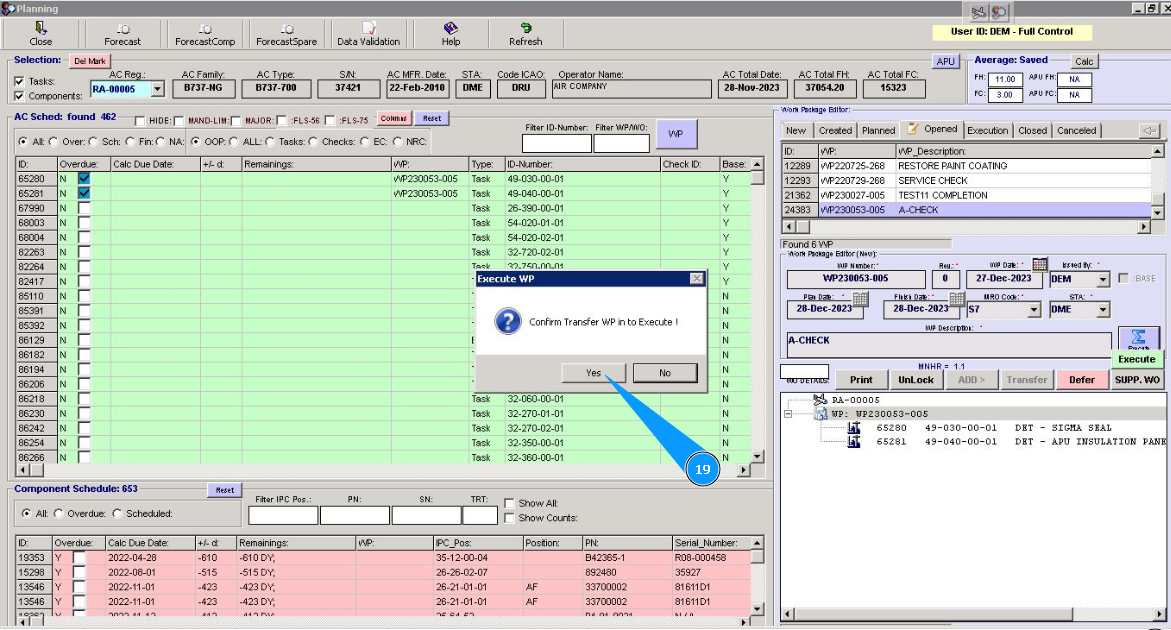 19. Click on the button "Yes", to confirm transferring Work package to the condition "Execution".