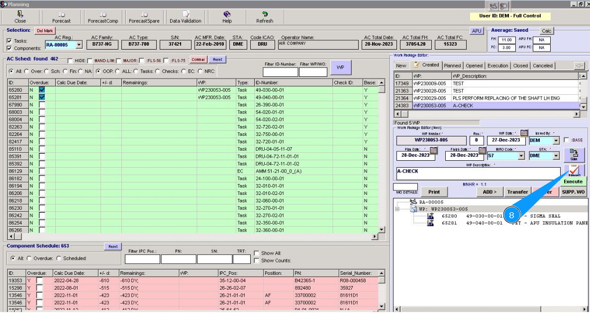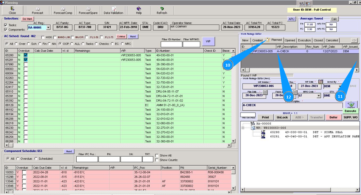 8. To transfer Work package to the condition "Planned", click on the button "Planned".