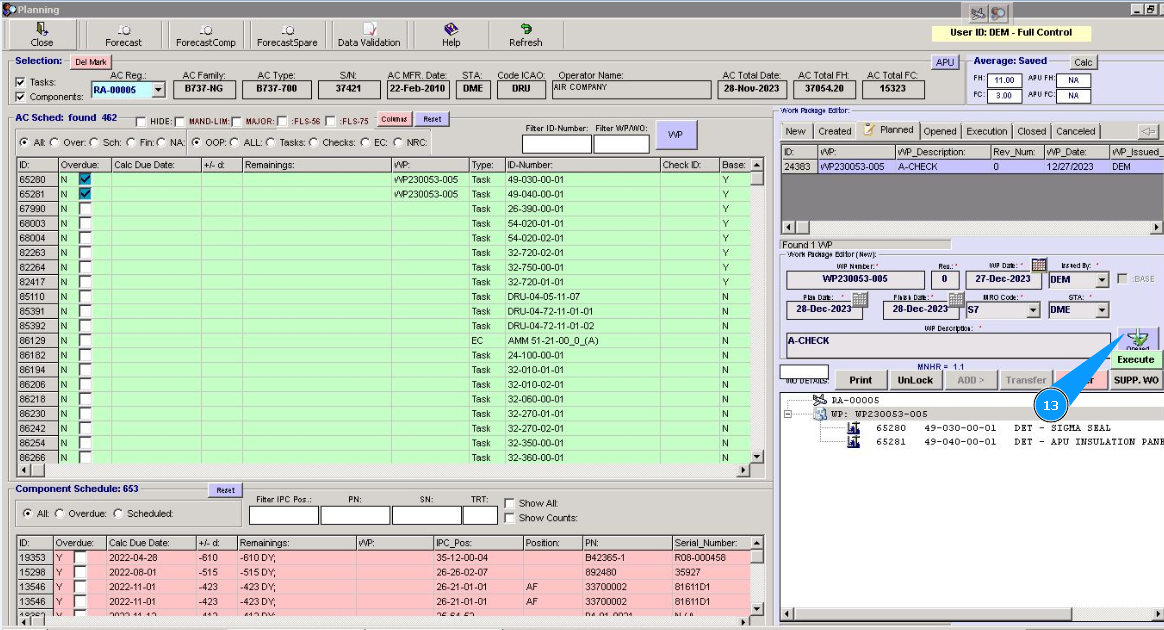 18. To transfer Work package to the condition "Execution", click on the button "Execute".