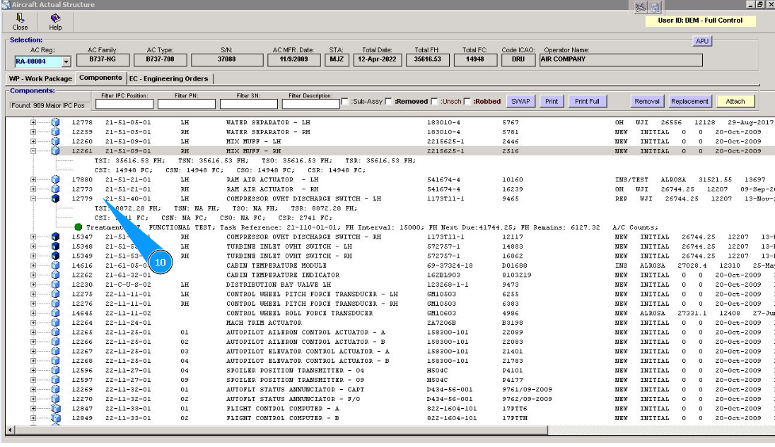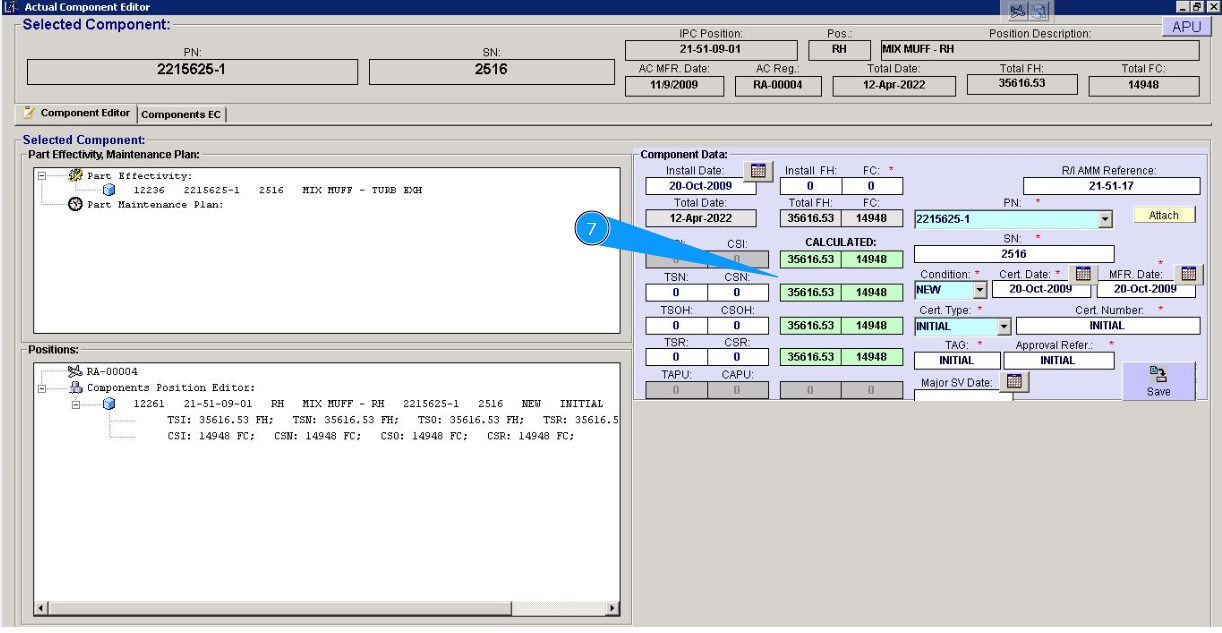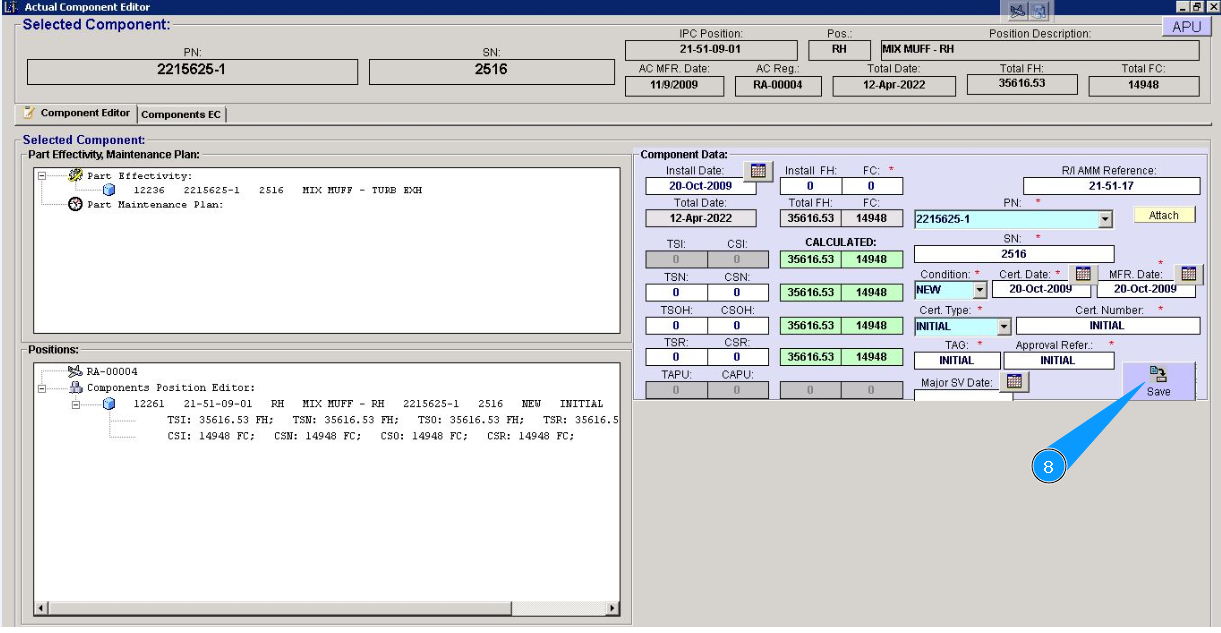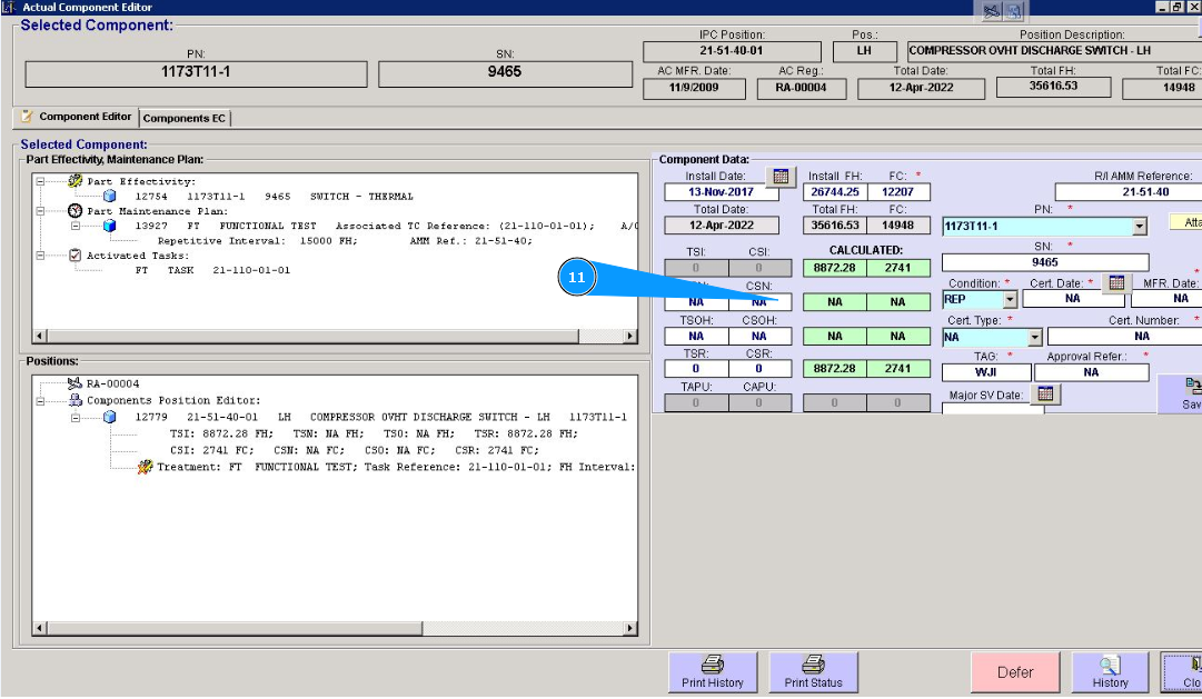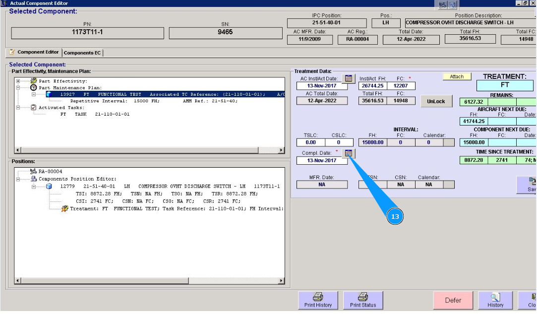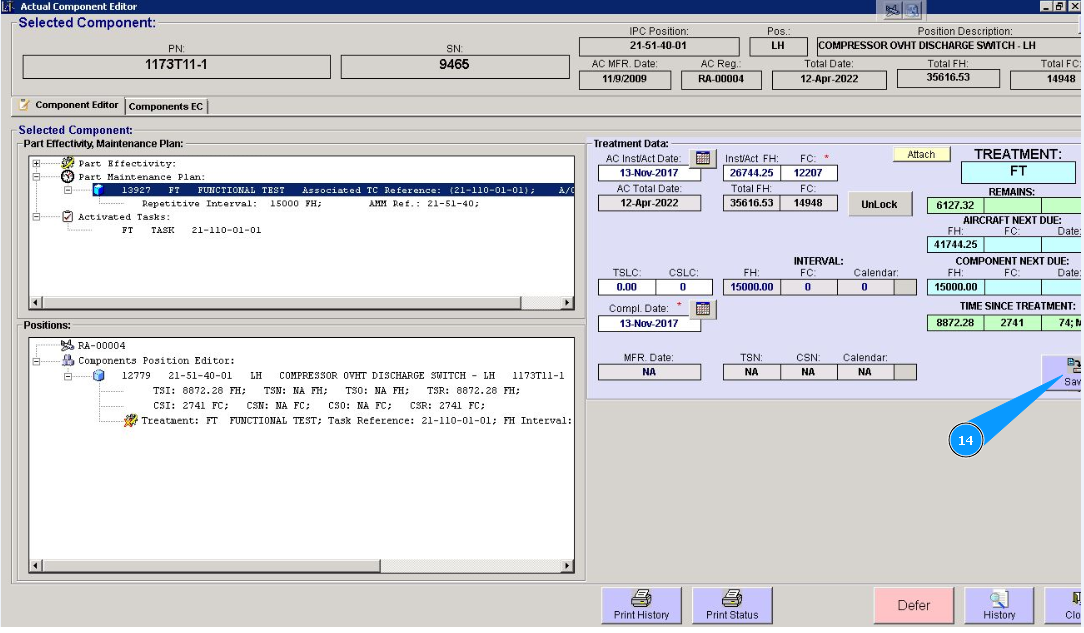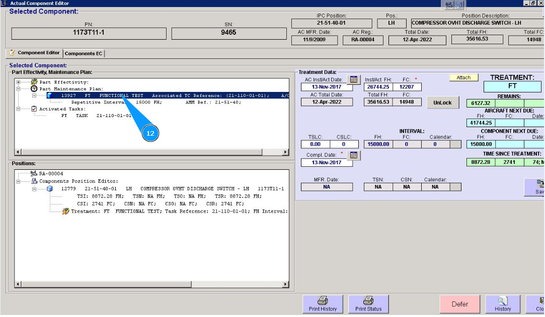 12. If necessary, correct treatment data, in this case, click on the line with treatment in the window Part Effectivity, Maintenance Plan".