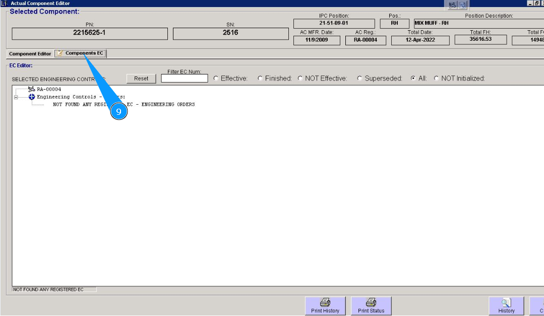 9. For correction, "Engineering Control" is chained with component, go to the tab "Components EC".
