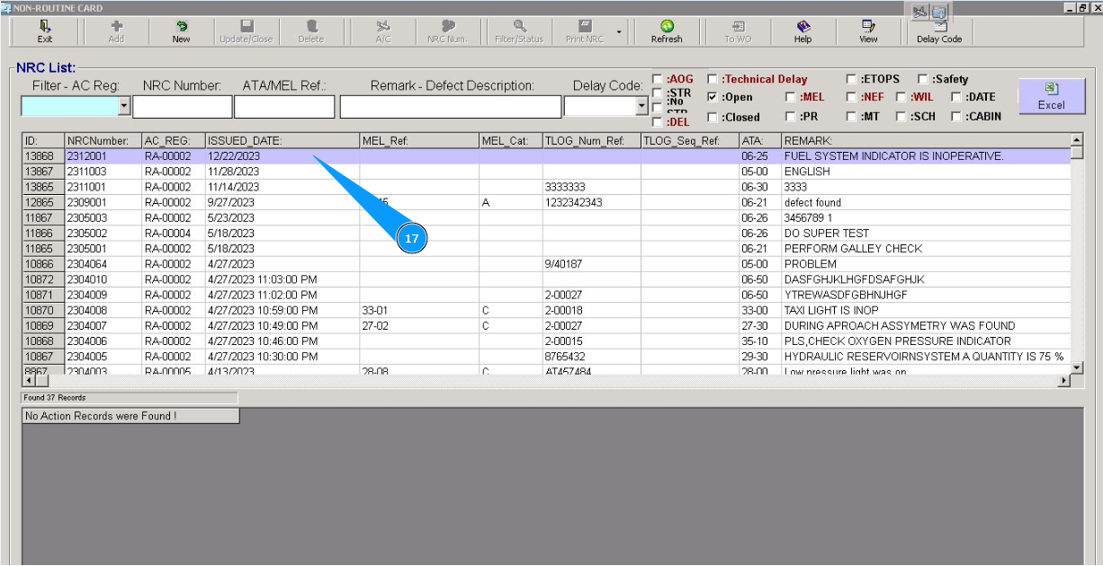 17. Check that new line with NRC is appeared in the window "NRC List". /images/how_to/Part-M/How_to_create_NRC_10.png