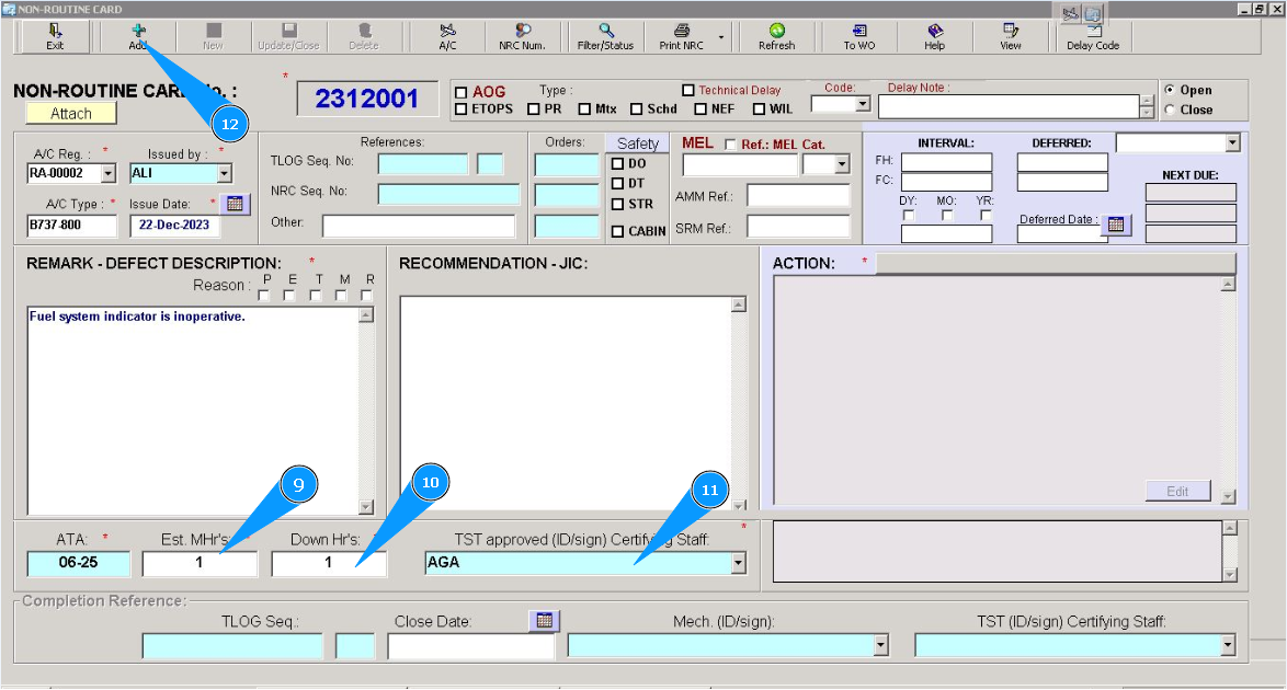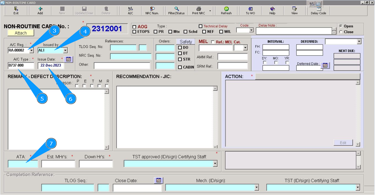 Note: NRC number of the fault or deviation record is automatically created by Alaskar "Non-Routine Card №". The first two digits mean the current year and months, the other is creation number one by one.