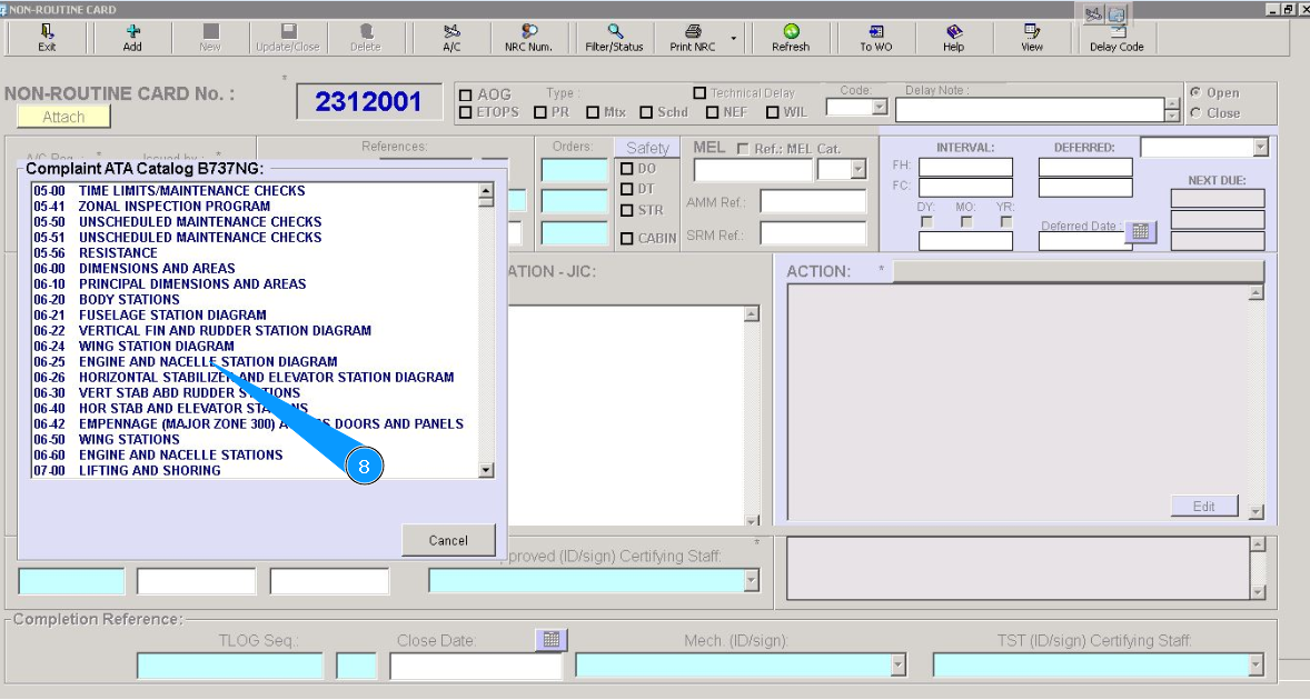 8. Select from dropdown list corresponding line with ATA by scrolling, and twice click on this line. /images/how_to/Part-M/How_to_create_NRC_4.png