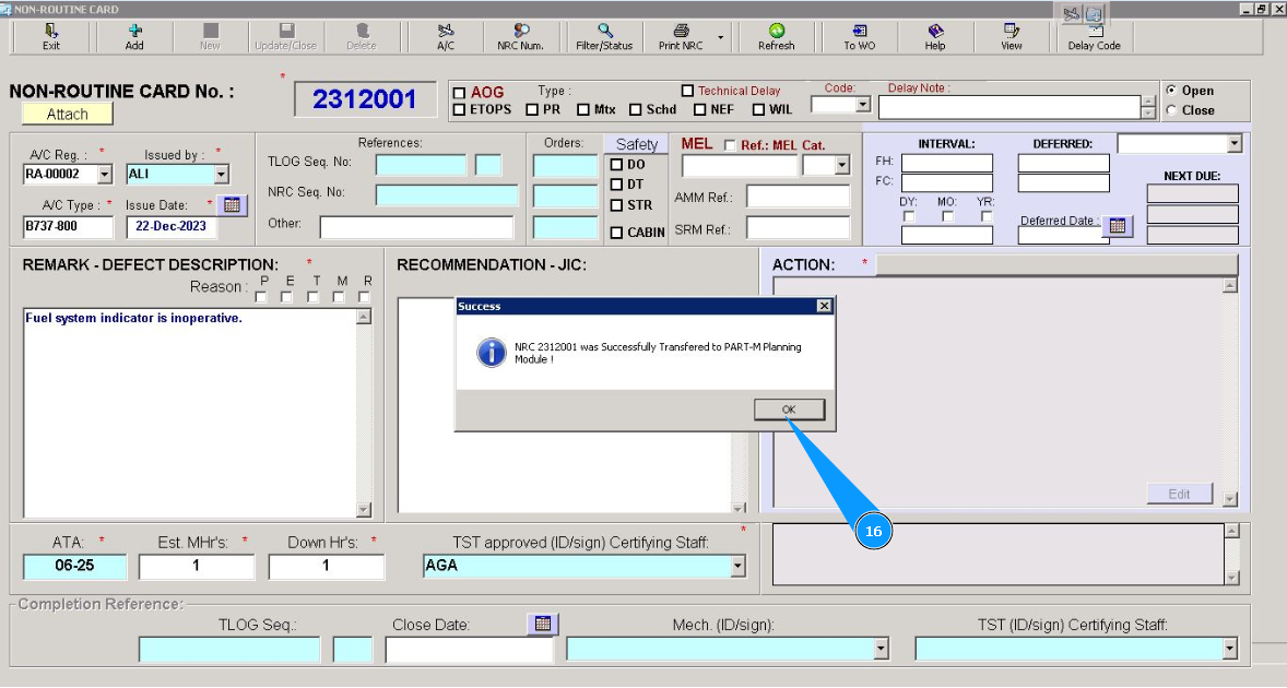 16. Click on the button "OK", NRC creation is successfully finished. /images/how_to/Part-M/How_to_create_NRC_9.png