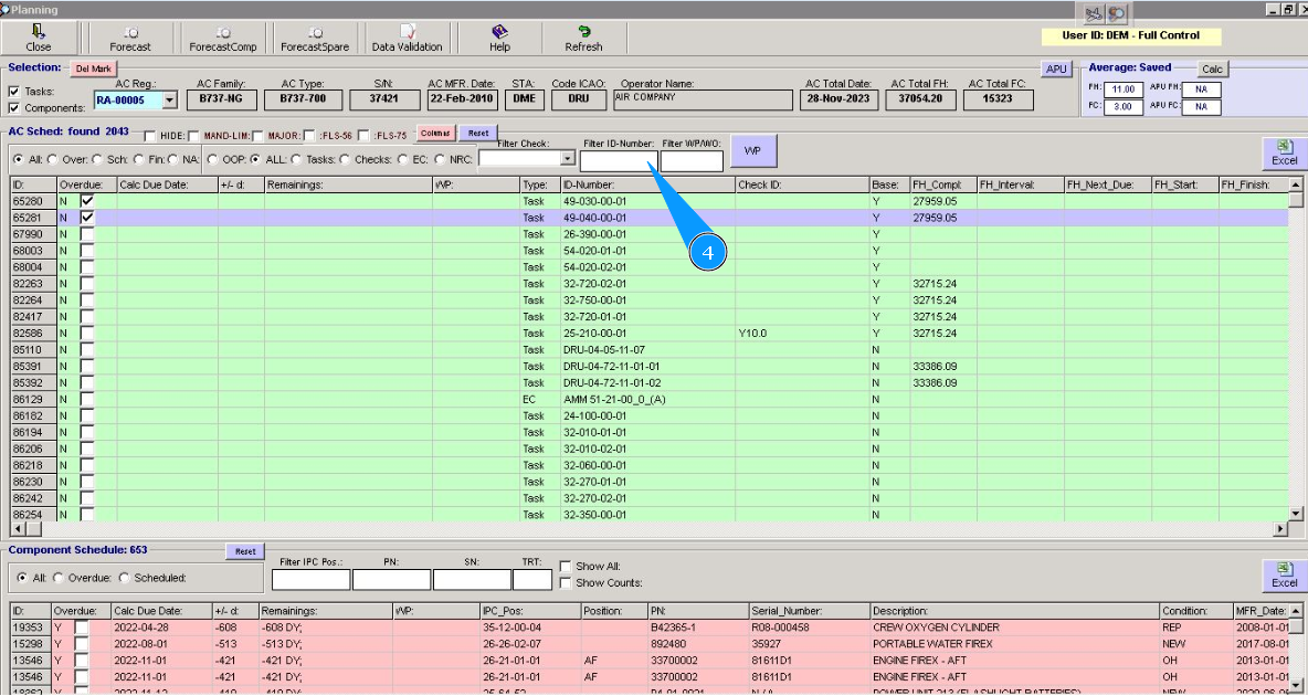 2. Select aircraft registration in the list of window "Actual Structure-Select Aircraft Reg.-SN".