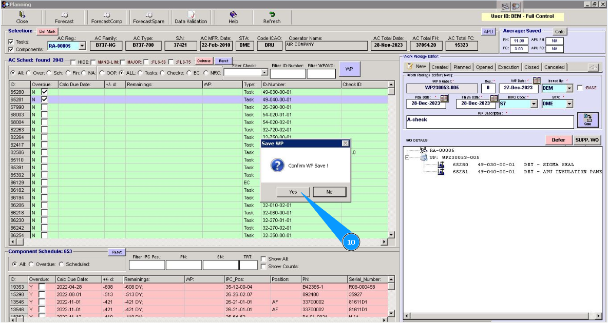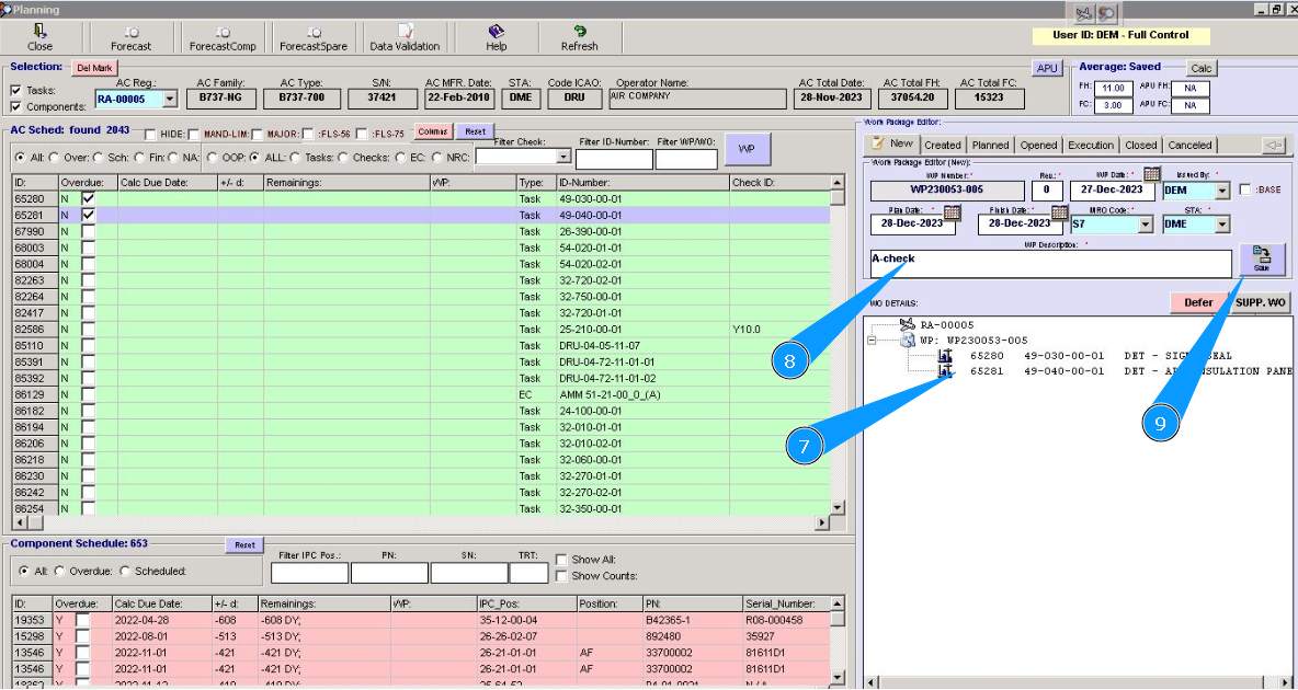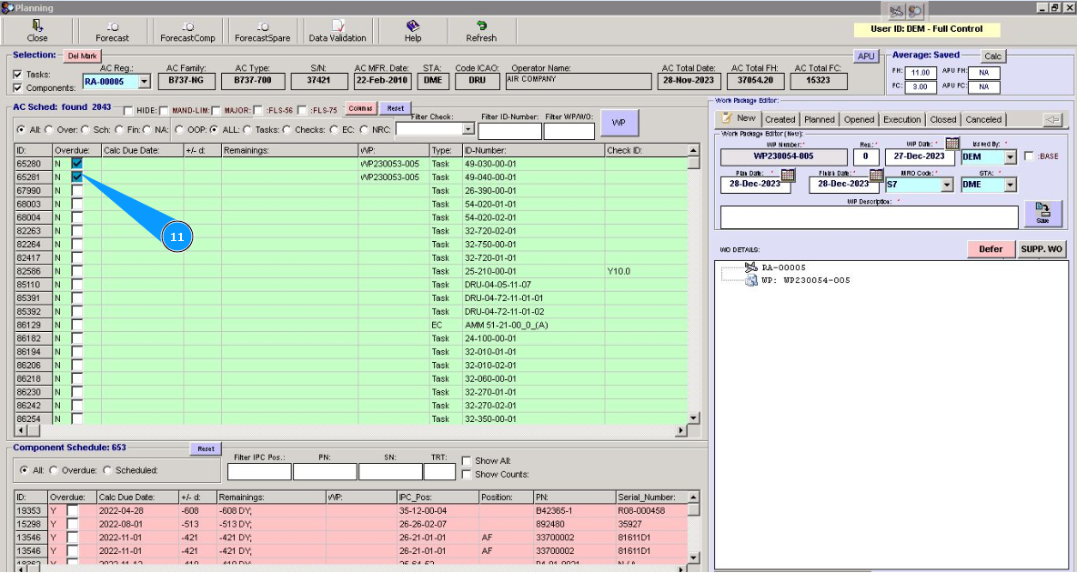 7. Check that all necessary tasks are in the WP in the window "WO Details". Note: Repeat the selection lines of tasks or checks for all necessary for adding to WP.