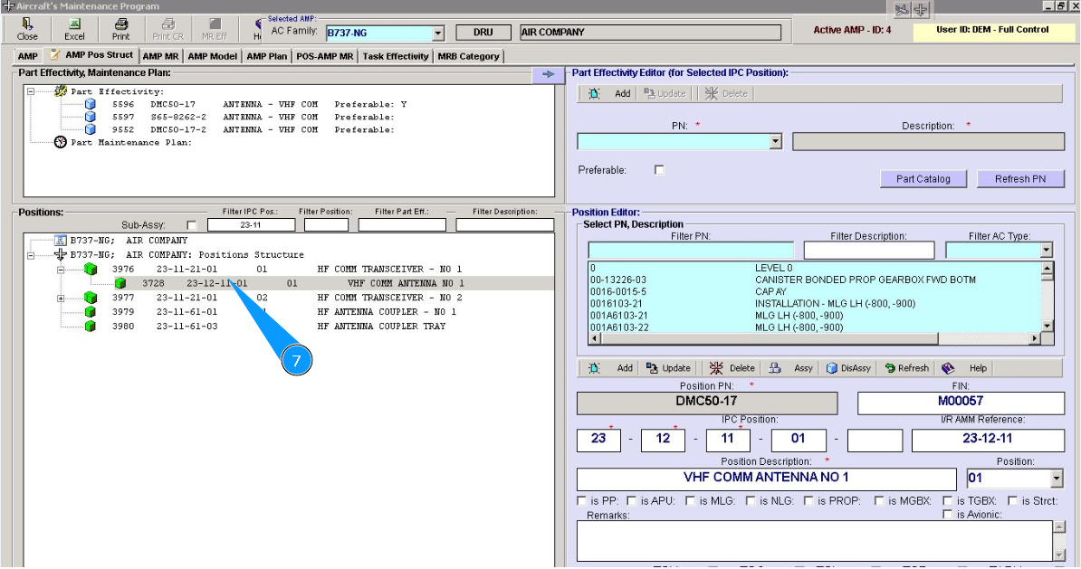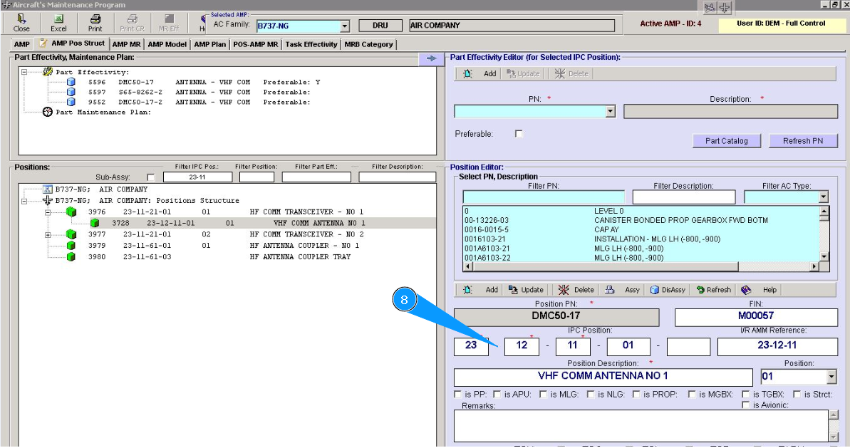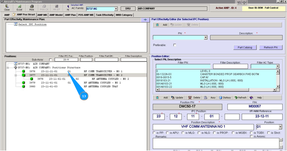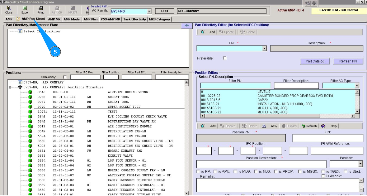 8. Check that the data for the selected position is displayed in the window "Position Editor".