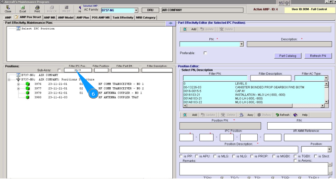 6. Enter the AIPC position number, which should be deleted from an assembly, in the field "Filter IPC position" of the window "Positions" and click on the button "Enter" on your keyboard. Note: If necessary, you can use other search criteria in the fields: "Filter Description", "Filter Position ".