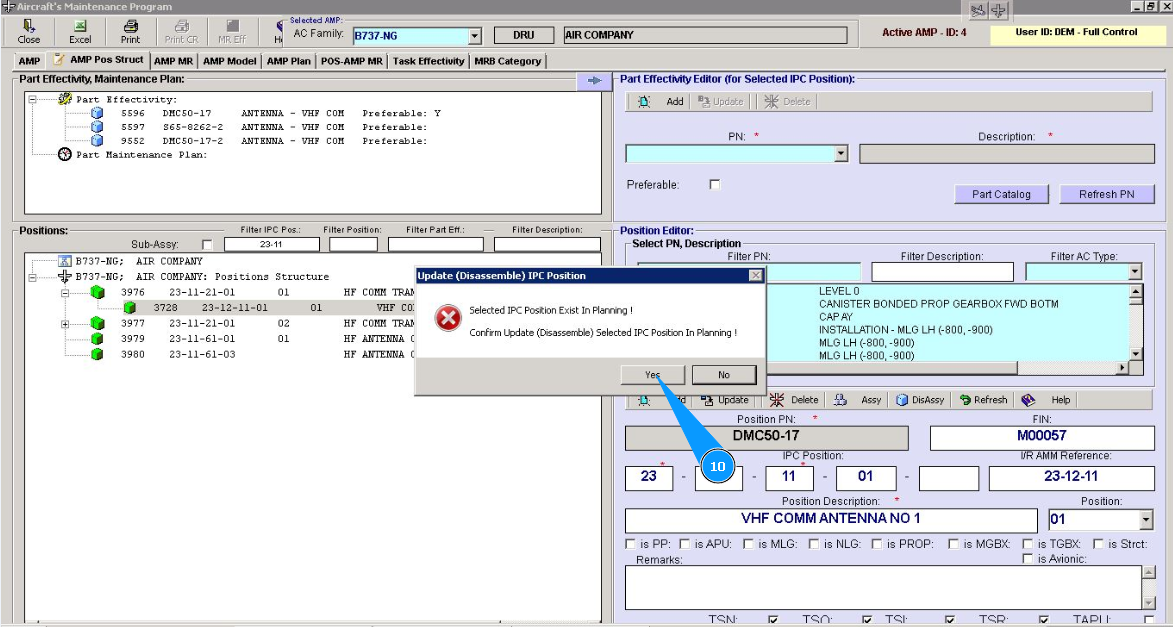 10. Click on the button "Yes", to confirm updating data in the planning module "Planing".