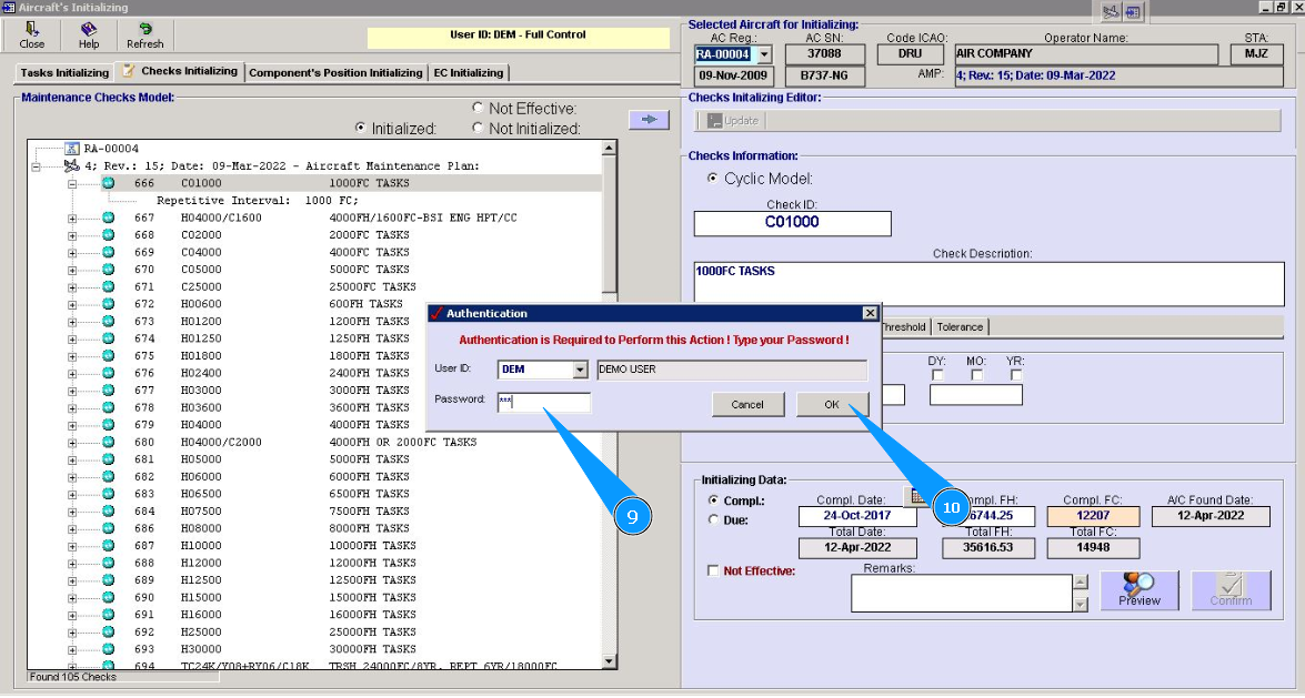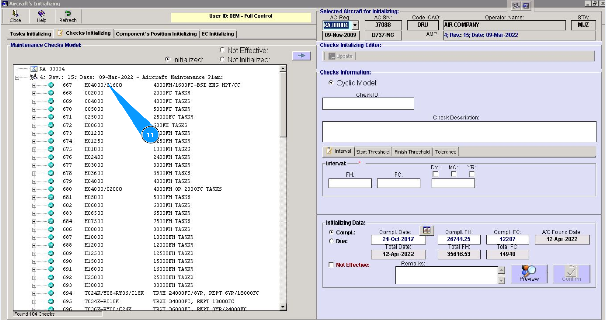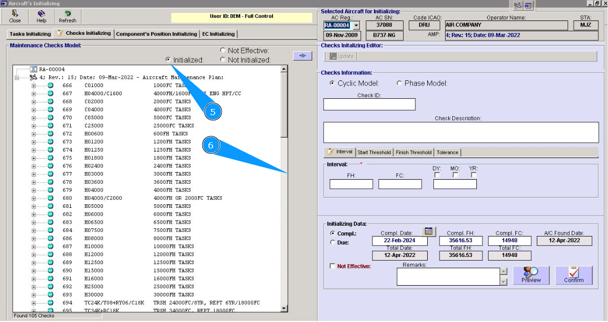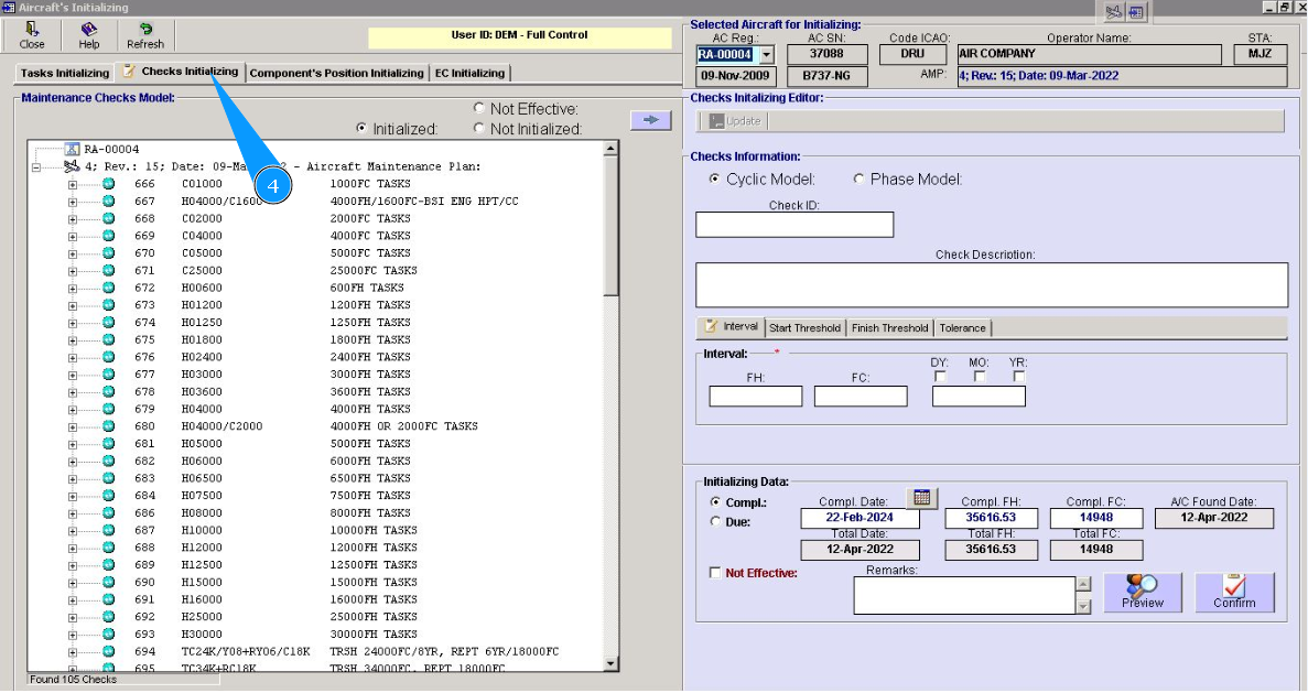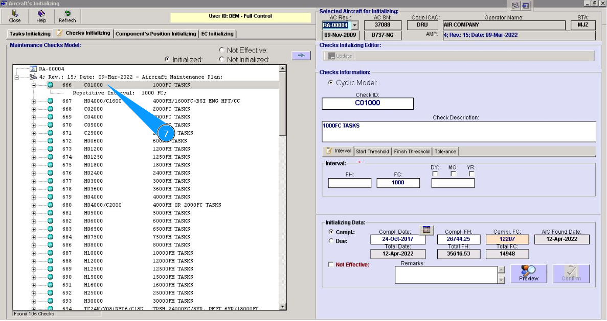 2. Select aircraft registration in the list of window "Actual Structure-Select Aircraft Reg.-SN".