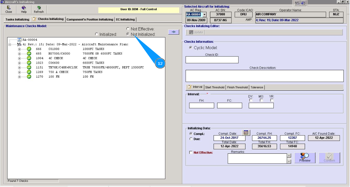 12. Set filter "non-initialized", click in the field "Not initialized".