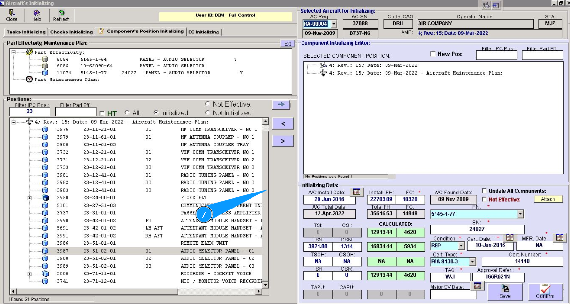 2. Select aircraft registration in the list of window "Actual Structure-Select Aircraft Reg.-SN".