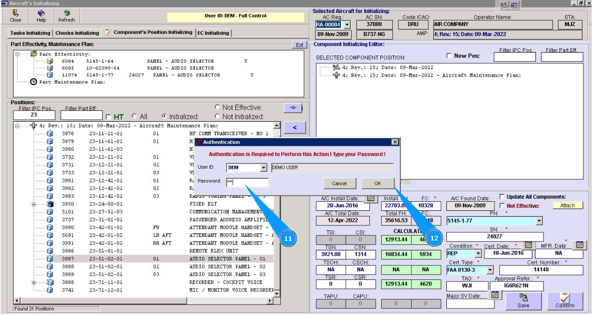 12. Click on the button "Ok", to save the deletion of the initializing component position.