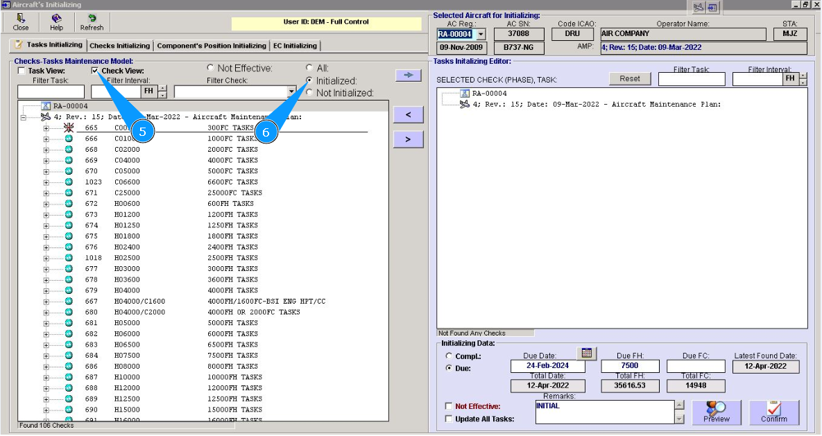 2. Select aircraft registration in the list of window "Actual Structure-Select Aircraft Reg.-SN".