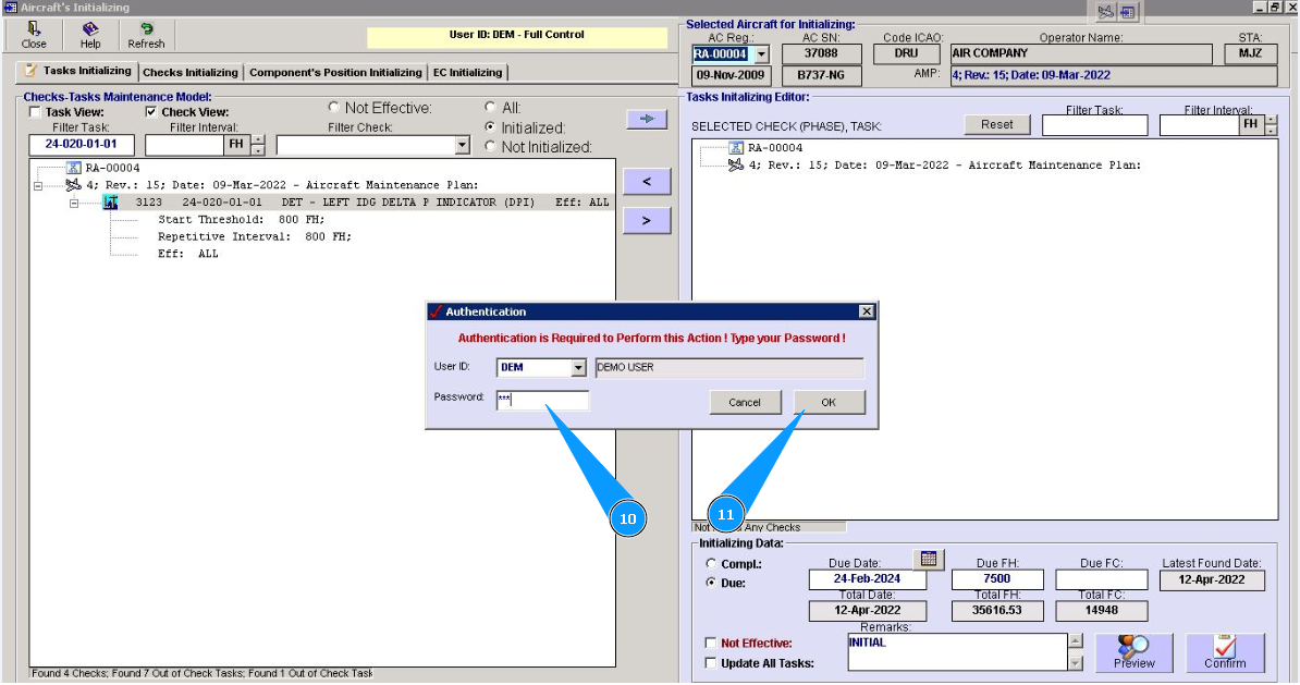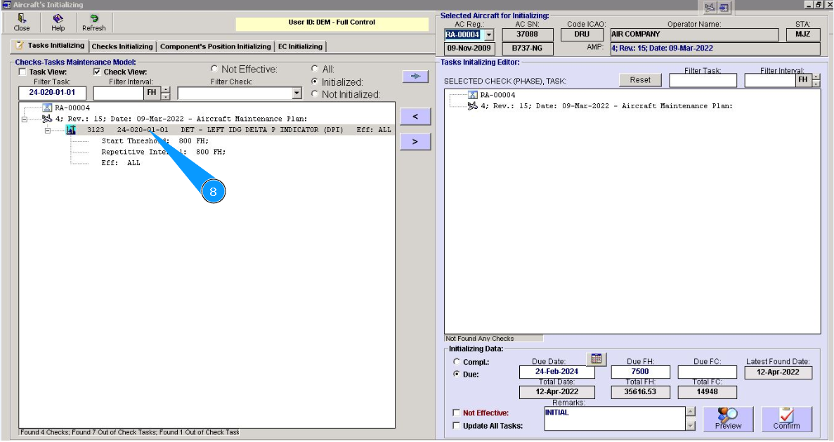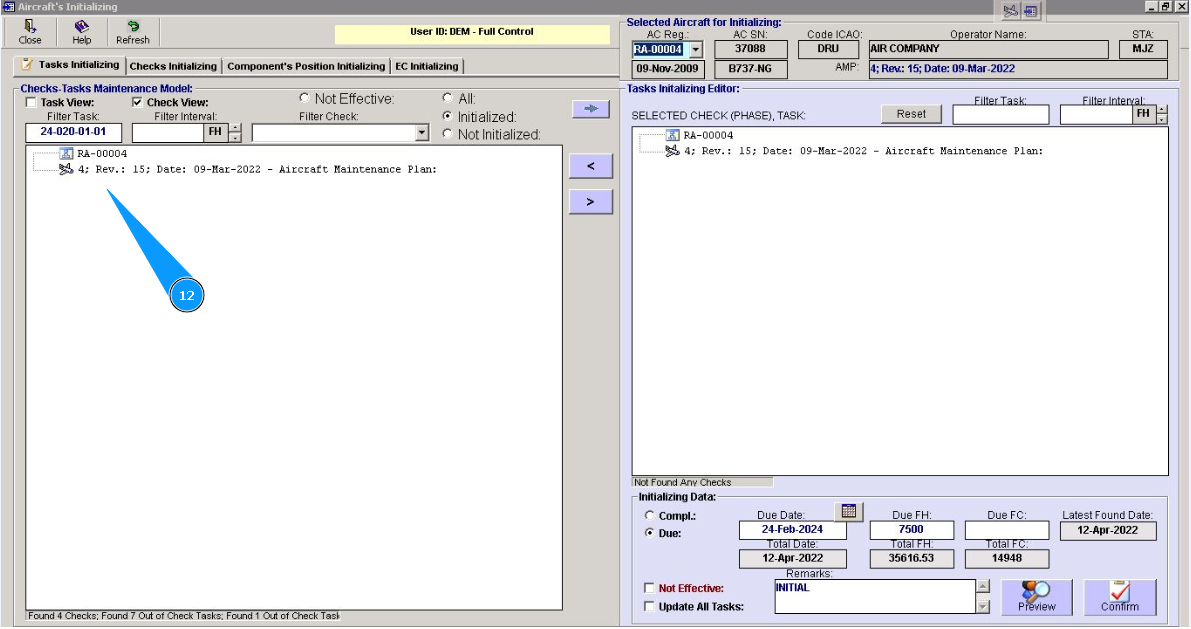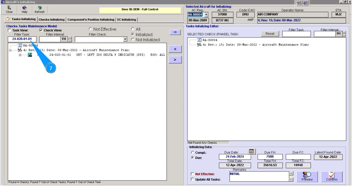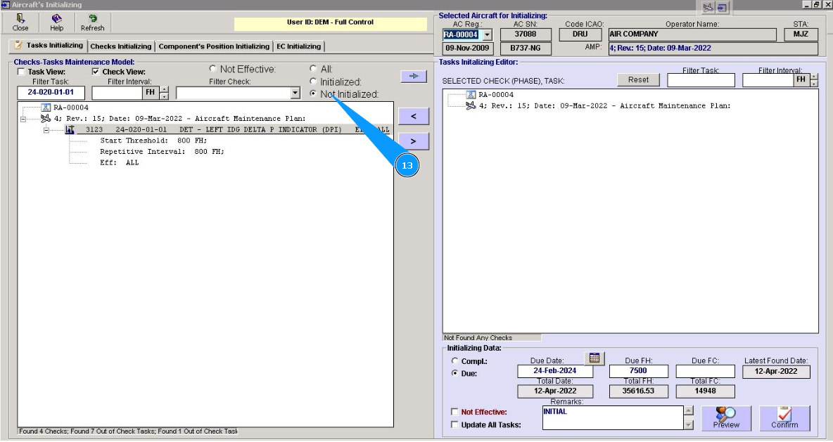 14. Check that selected task is displayed in the window of non- initialized tasks.