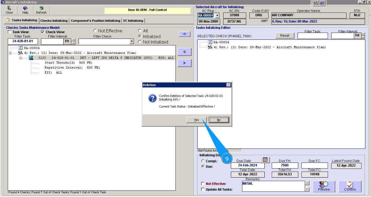 9. Click on the button "Yes", to confirm deletion of initializing task.