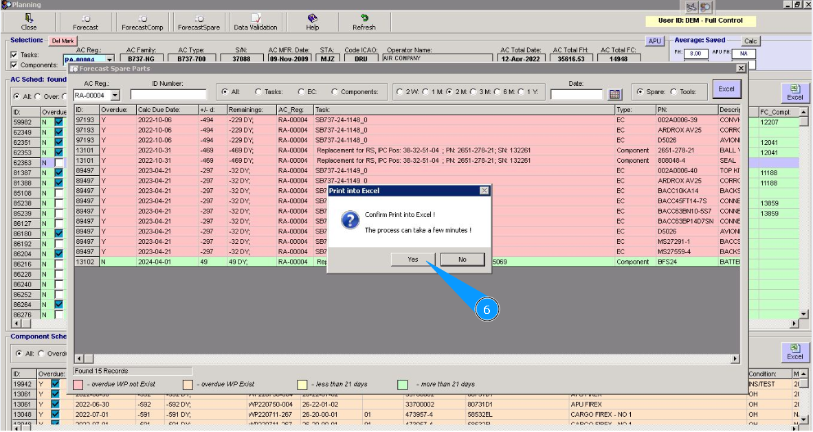 6. Click on the button "Yes", to confirm downloading data to excel.