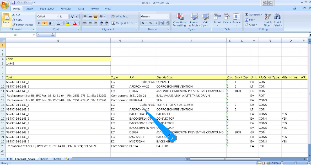 4. Click on the button "ForecastSpare, to open editor of downloading data of materials.