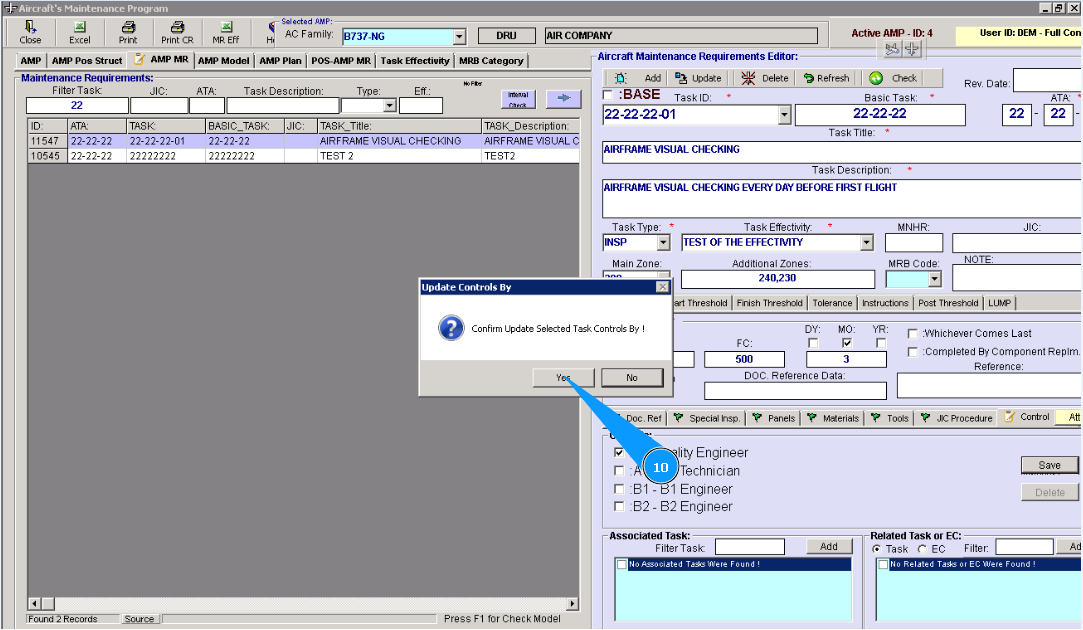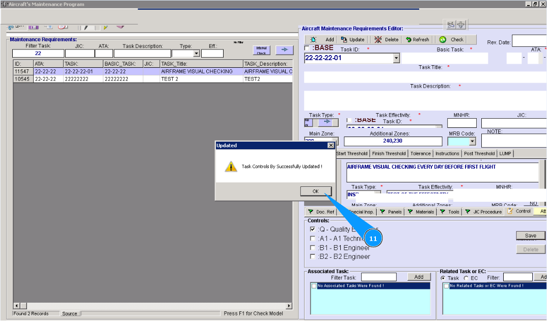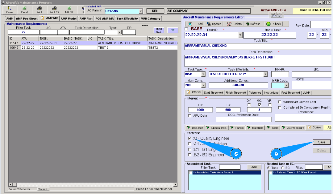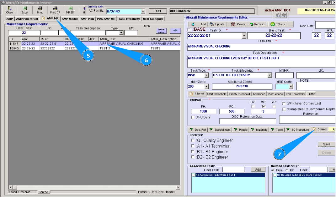 7. Then go to the tab "Control" of editor "Aircraft Maintenance Requirements Editor".