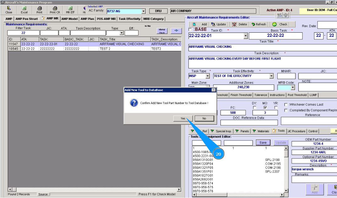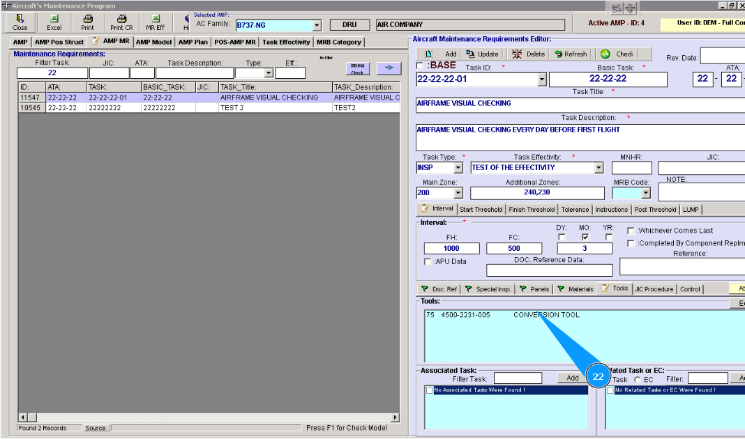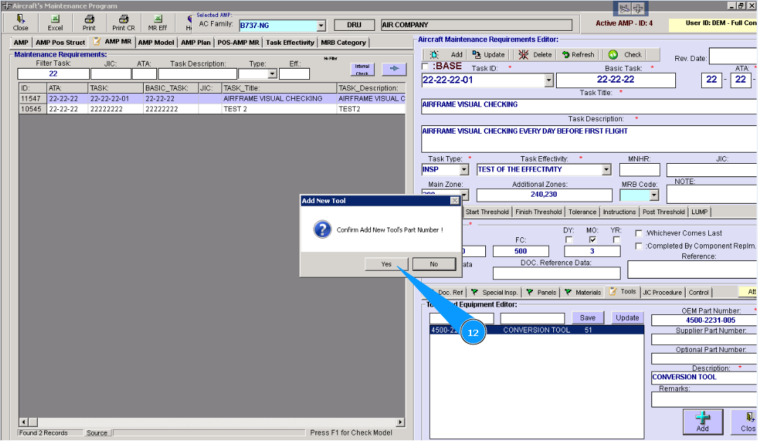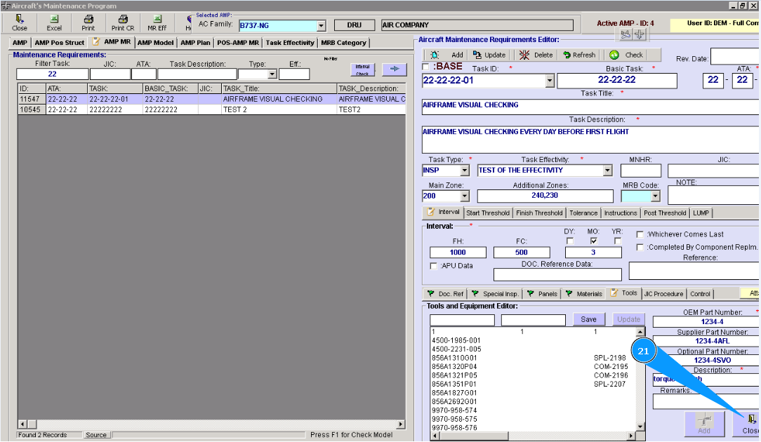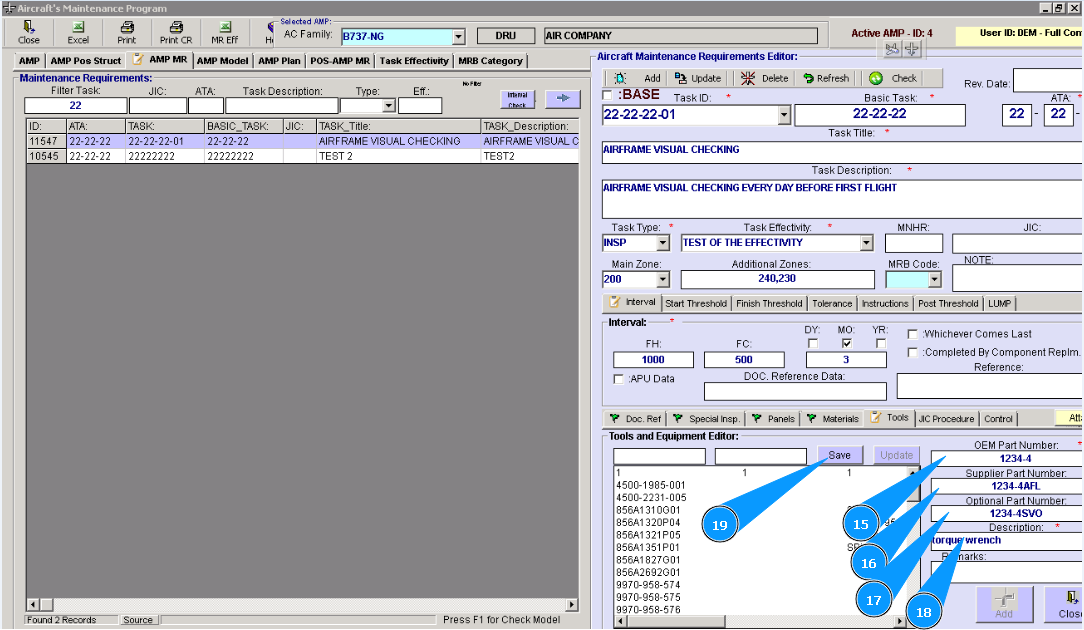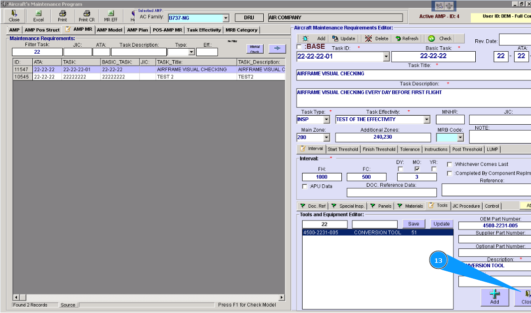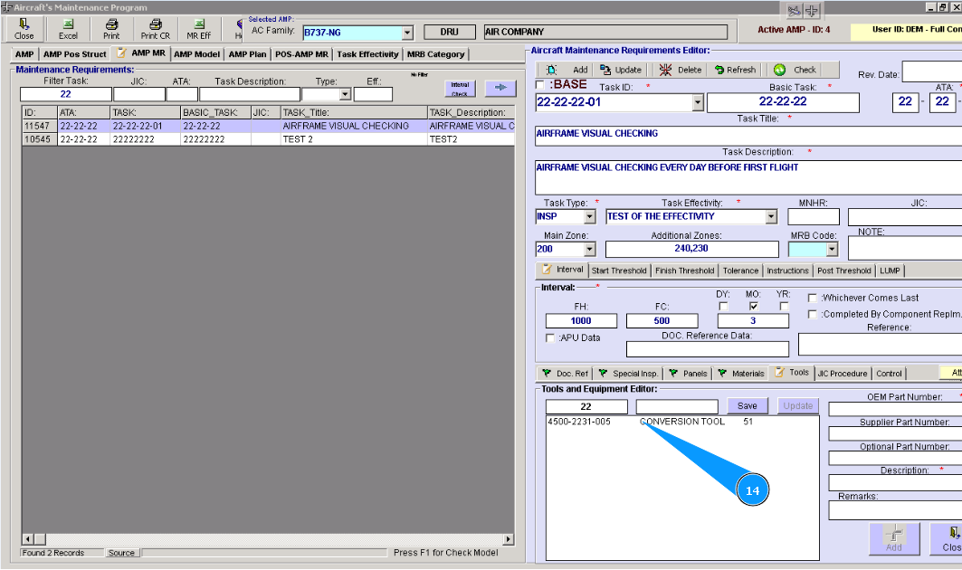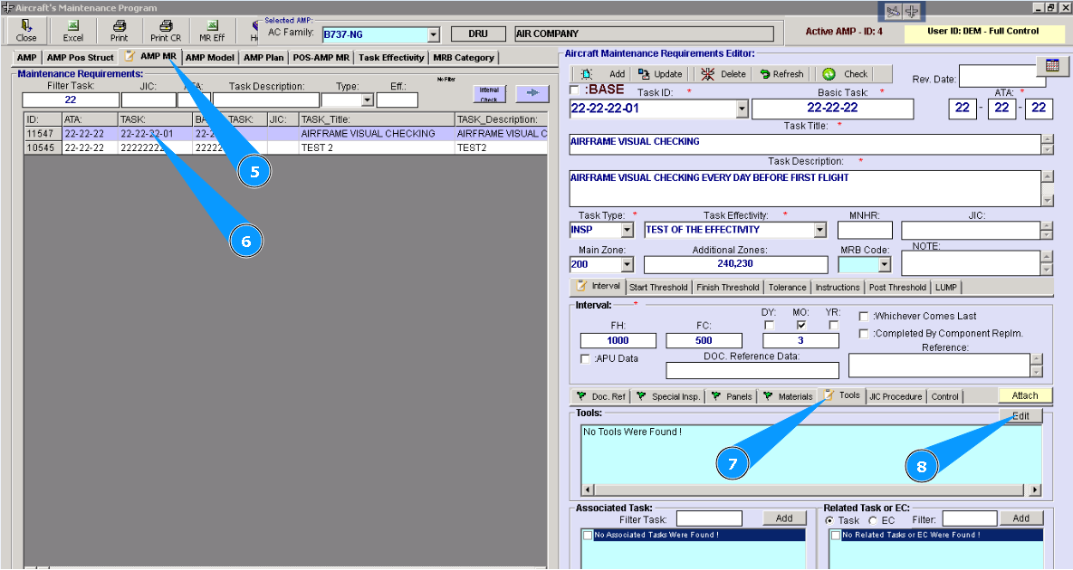 7. Then go to tab "Tools" in the editor "Aircraft Maintenance Requirements Editor".