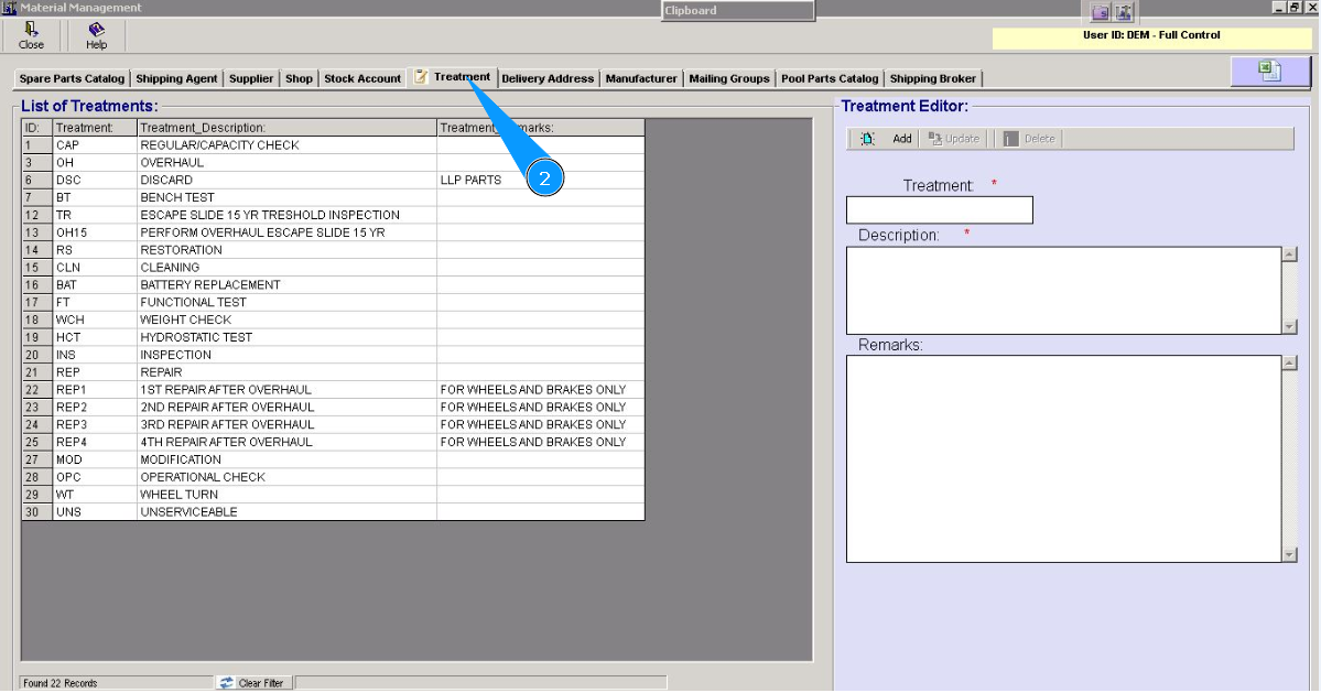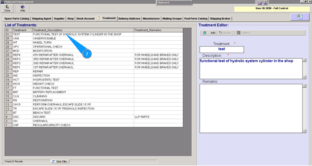 7. Make sure that the created treatment is displayed in the list of the window "List of Treatments".