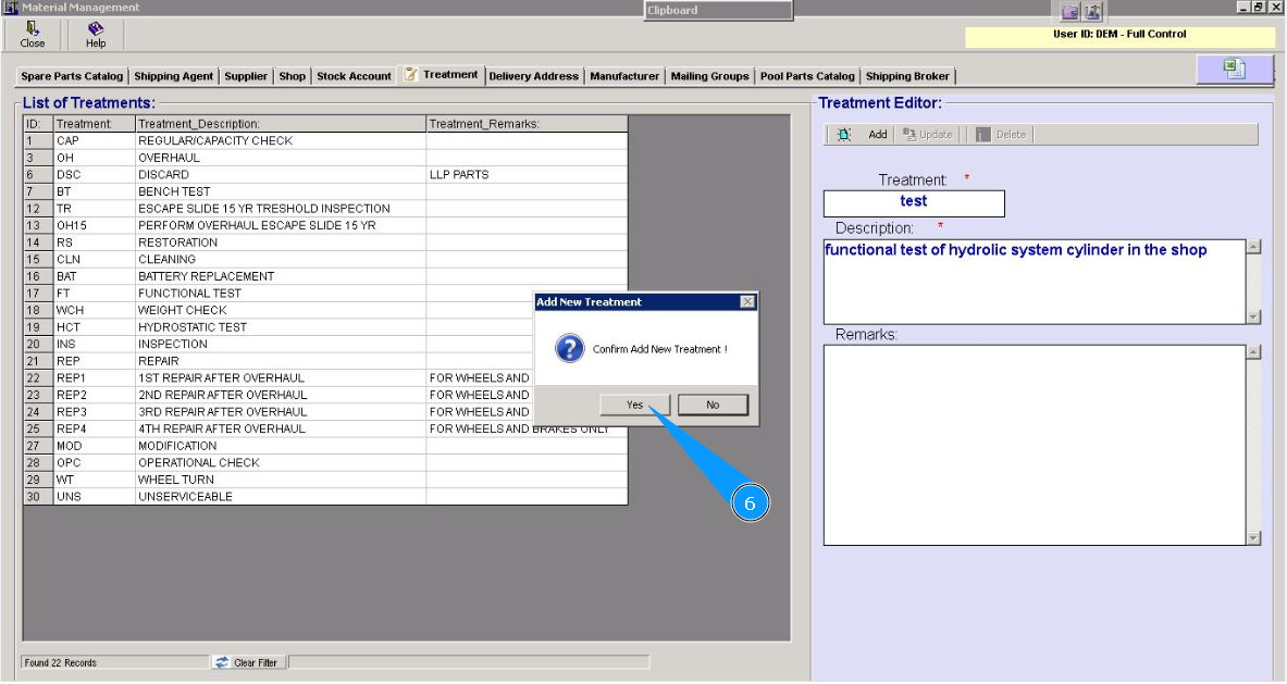 6. Click on the button "Yes", to confirm adding treatment to the program.