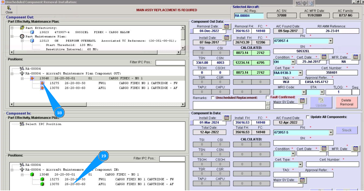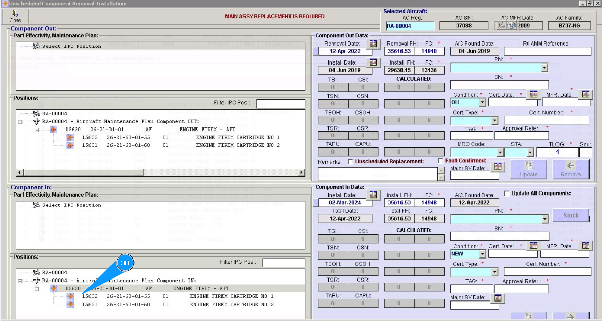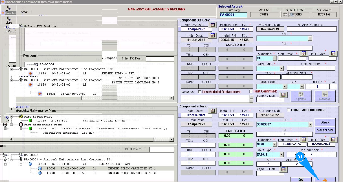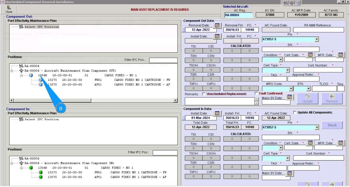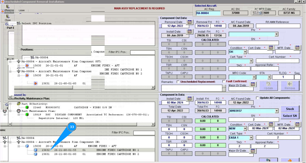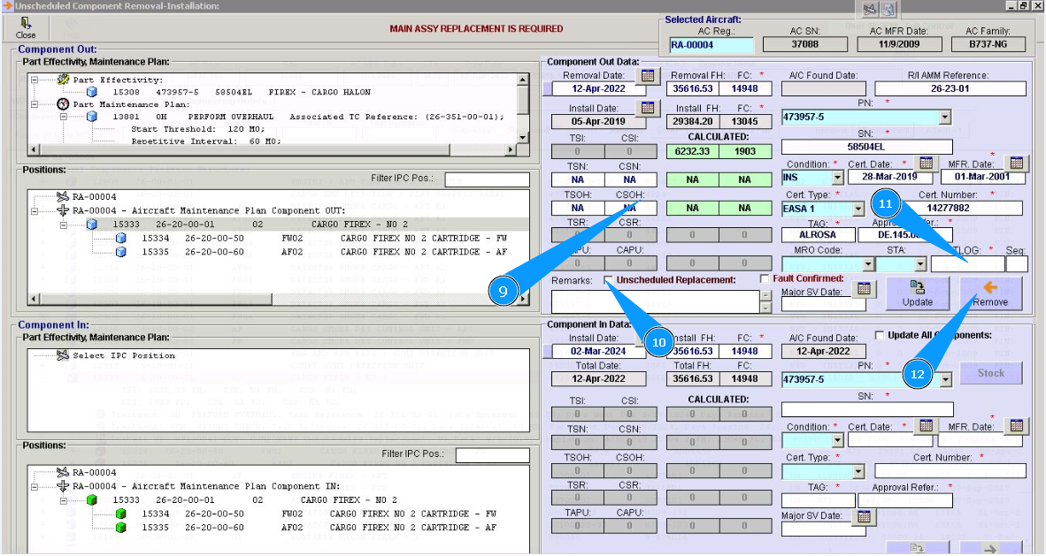 10. Click in the window "Unscheduled Replacement", if replacement is performed after component failure.