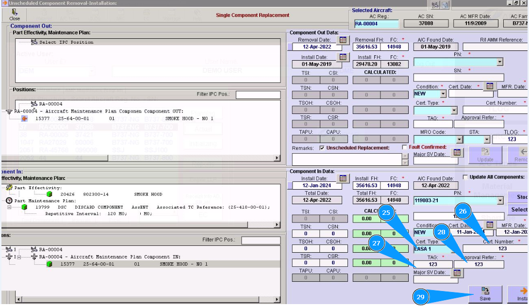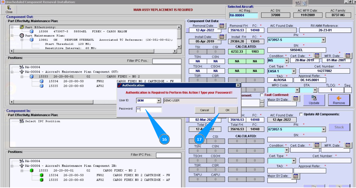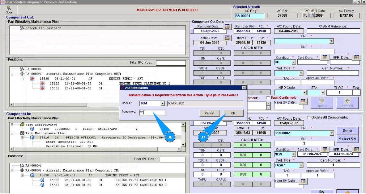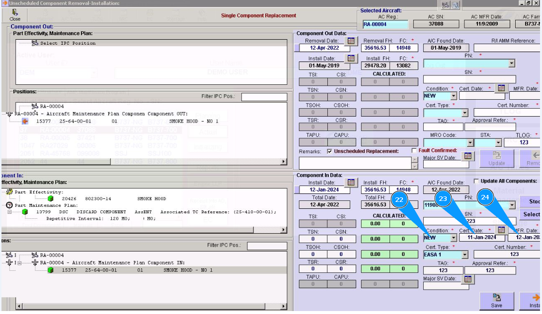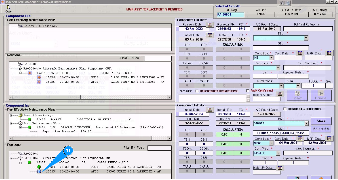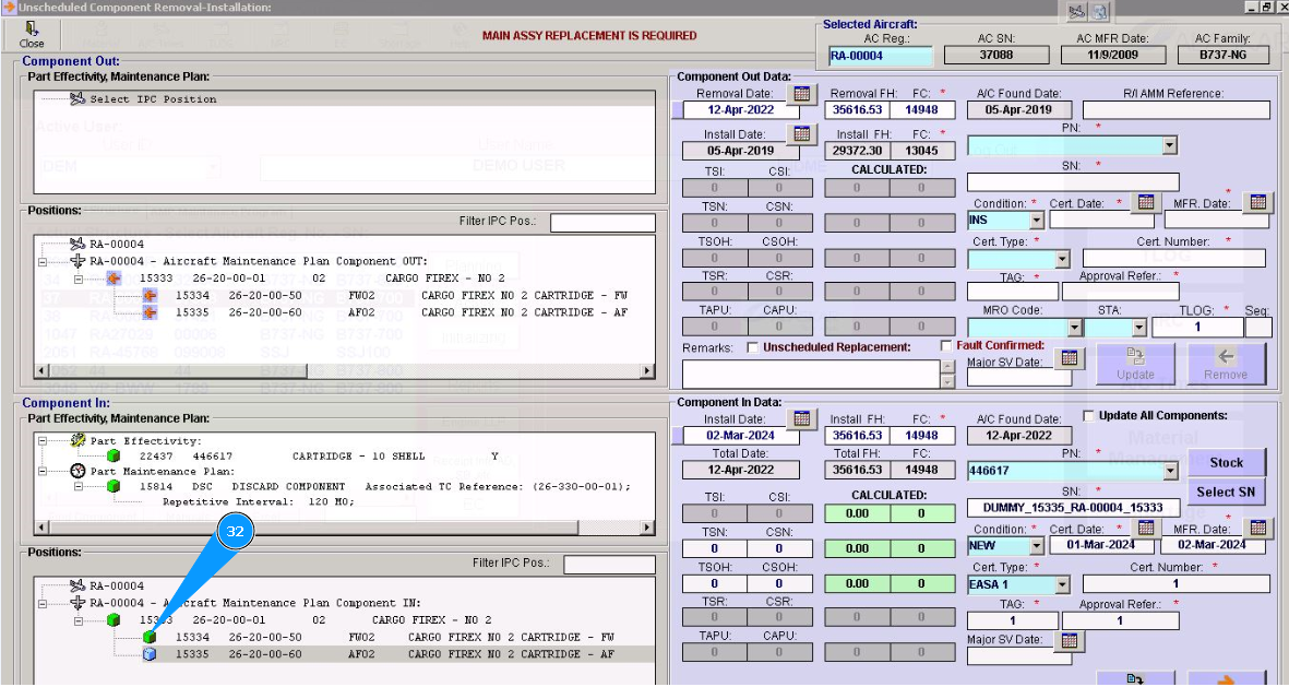 10. Click in the window "Unscheduled Replacement", if replacement is performed after component failure.