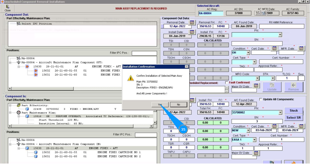 35. Click on the button "Yes", to confirm the installation of the assembly on the board.