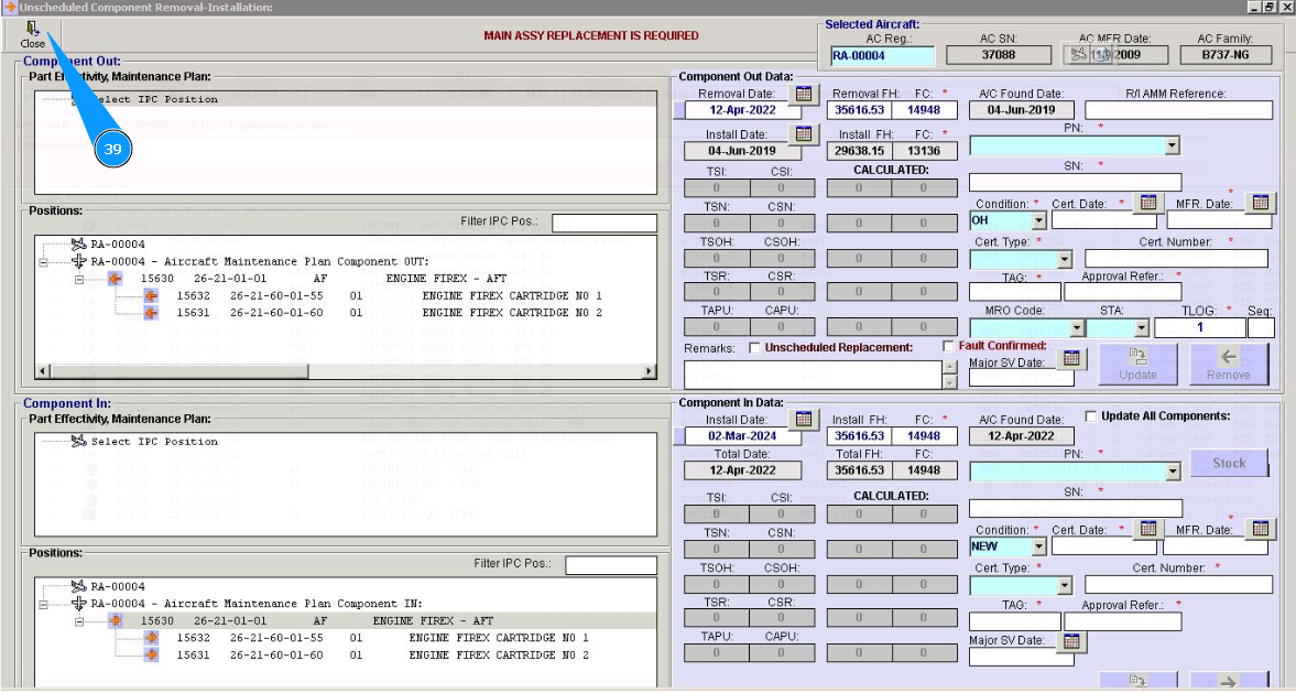 39. Click on the button "Close", to go out from component replacement editor.