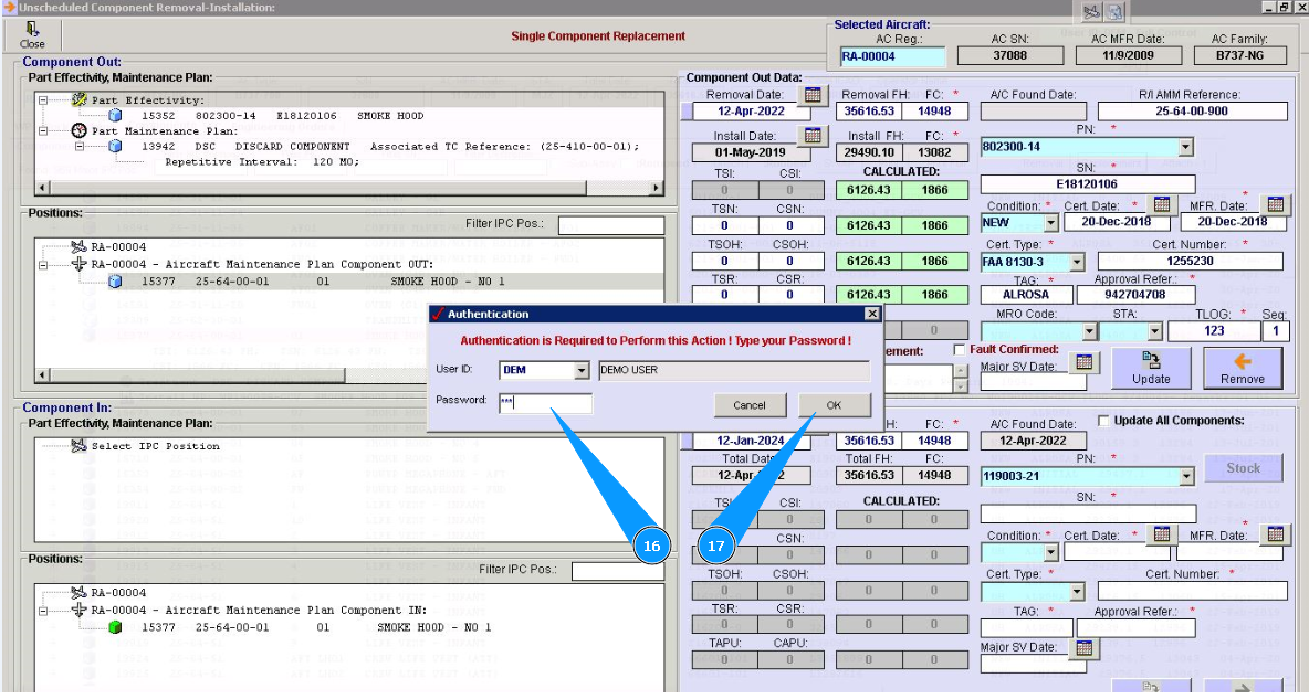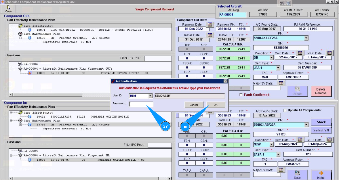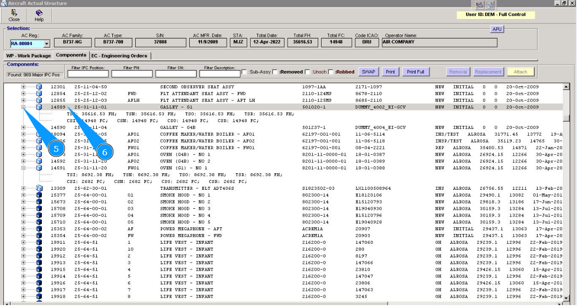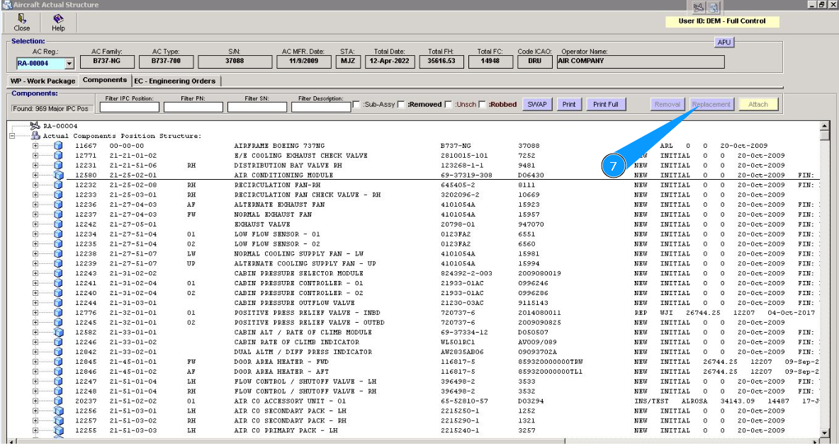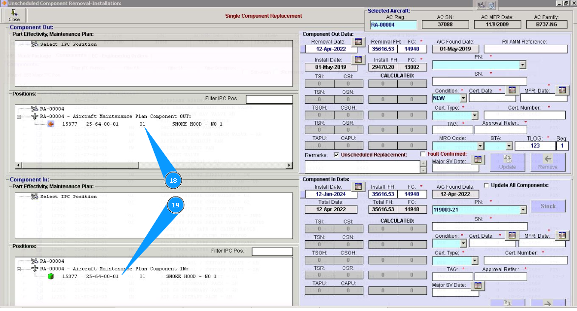 31. Click on the line of treatment in the window "Component In" and chapter "Part Maintenance plan". Note: Treatment lines for components are presented of hard time components only.