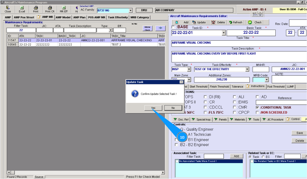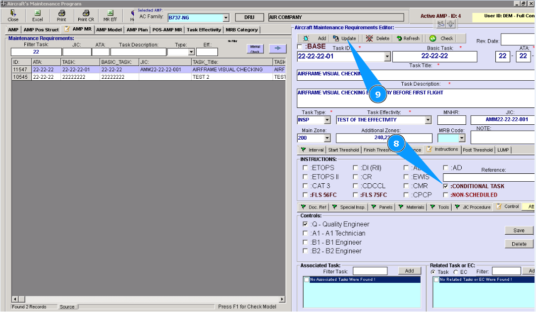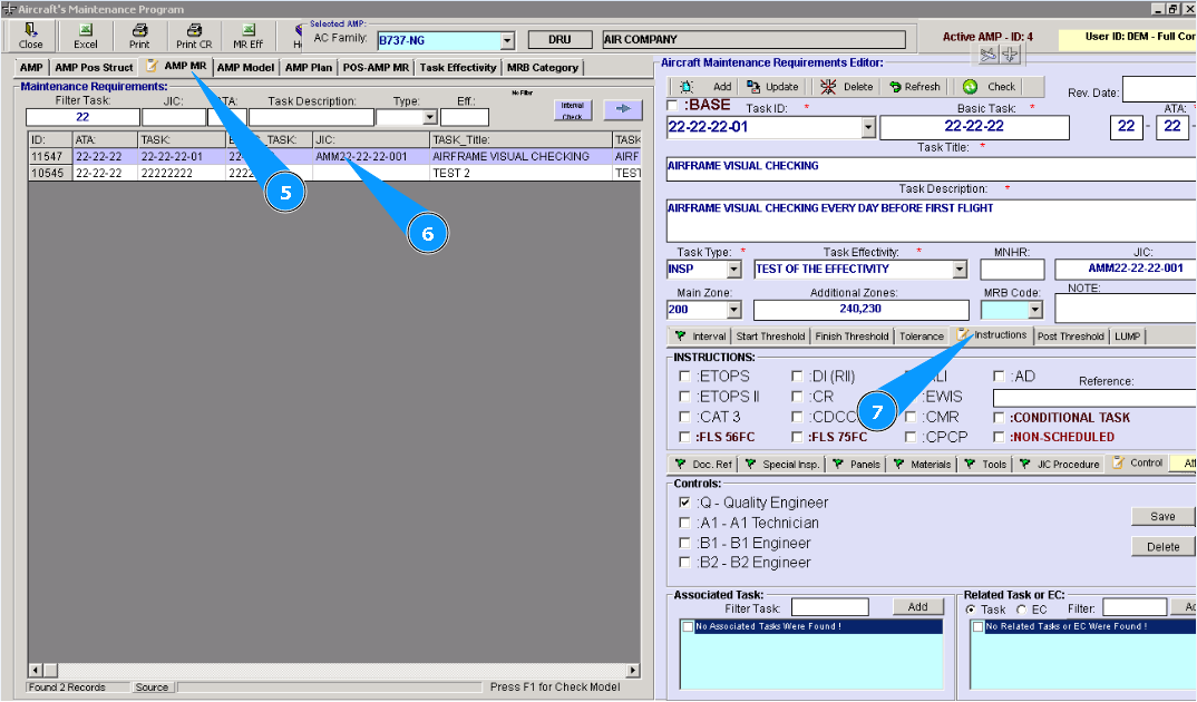 7. Then go to the tab "Instructions" of editor "Aircraft Maintenance Requirements Editor".