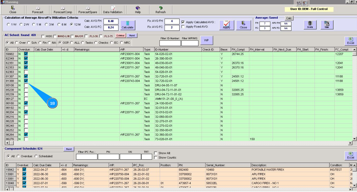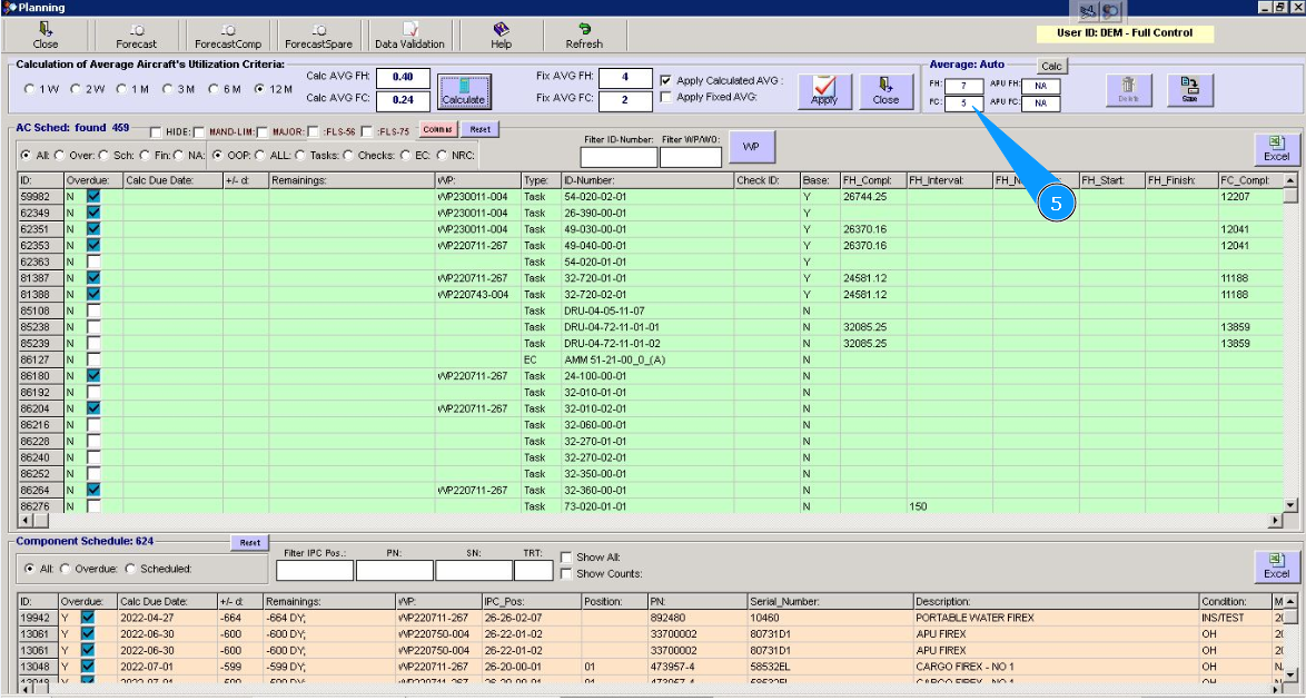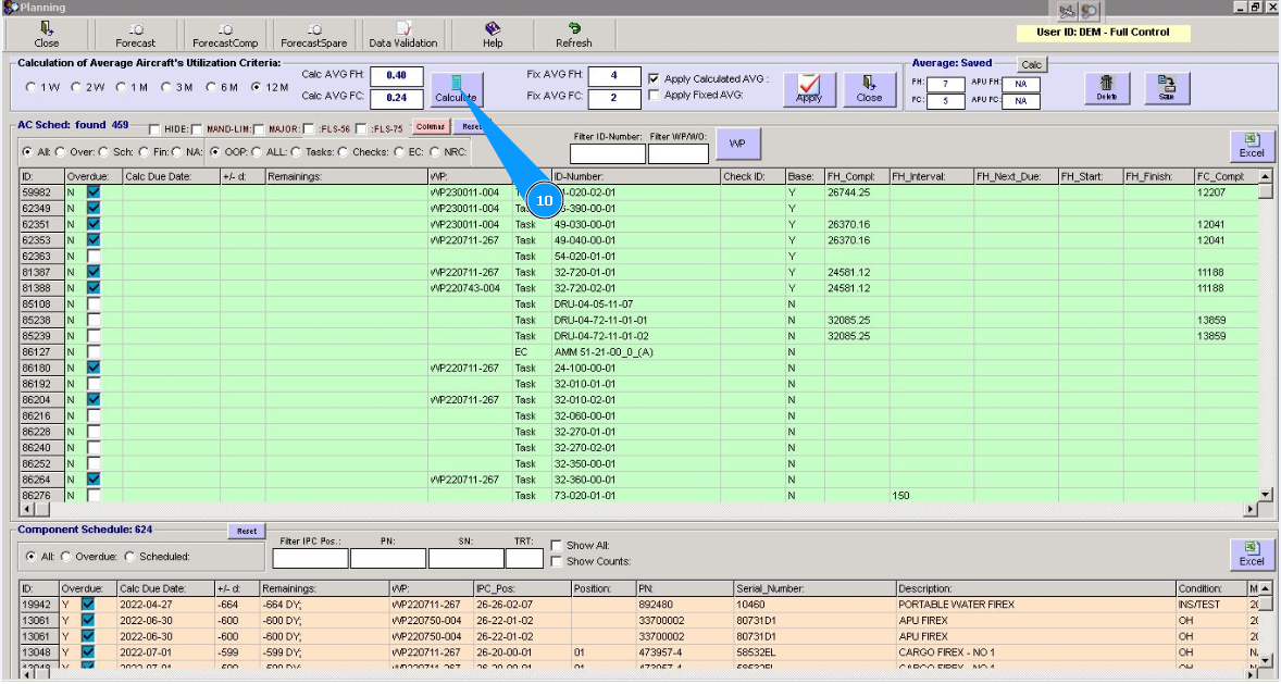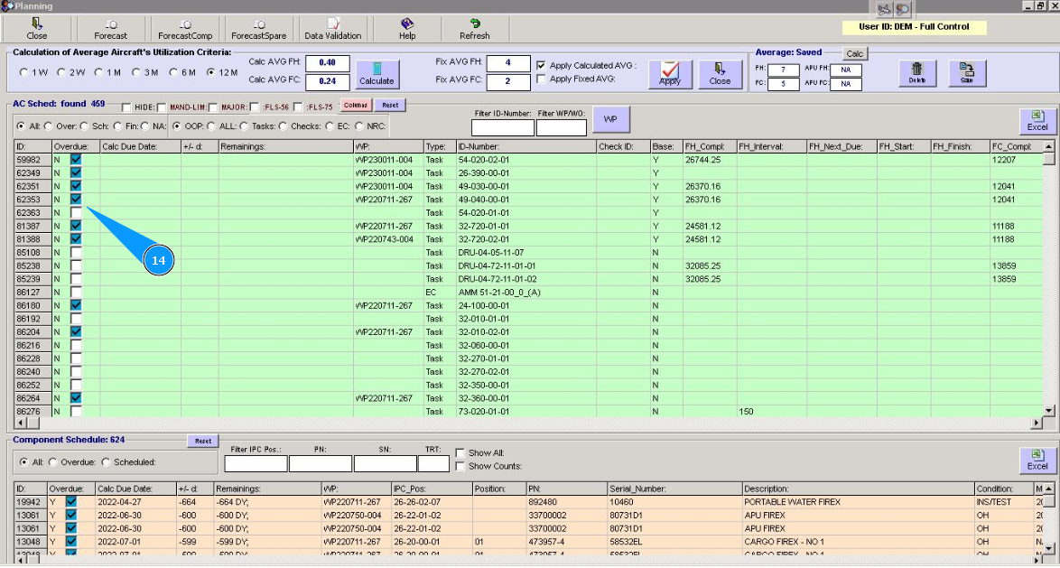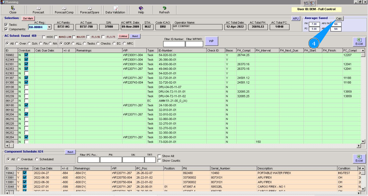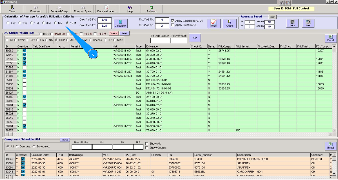 15. In this case, set the filter "Apply Fixed AVG", to calculate deadlines for task planning based on your requested AVG aircraft utilization.