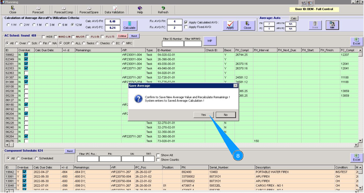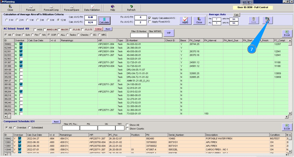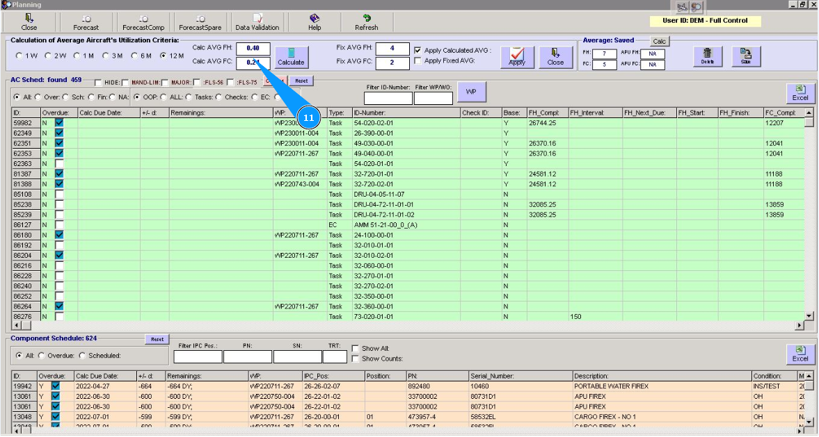 Attention: Such an actual display of forecast planning or deadline with AVG aircraft utilization under "Apply Calculated AVG" or "Apply Fixed AVG" is possible only you are in the editor window. After the editor closes, recalculation will be performed under automatic parameters from the window "Average Auto".