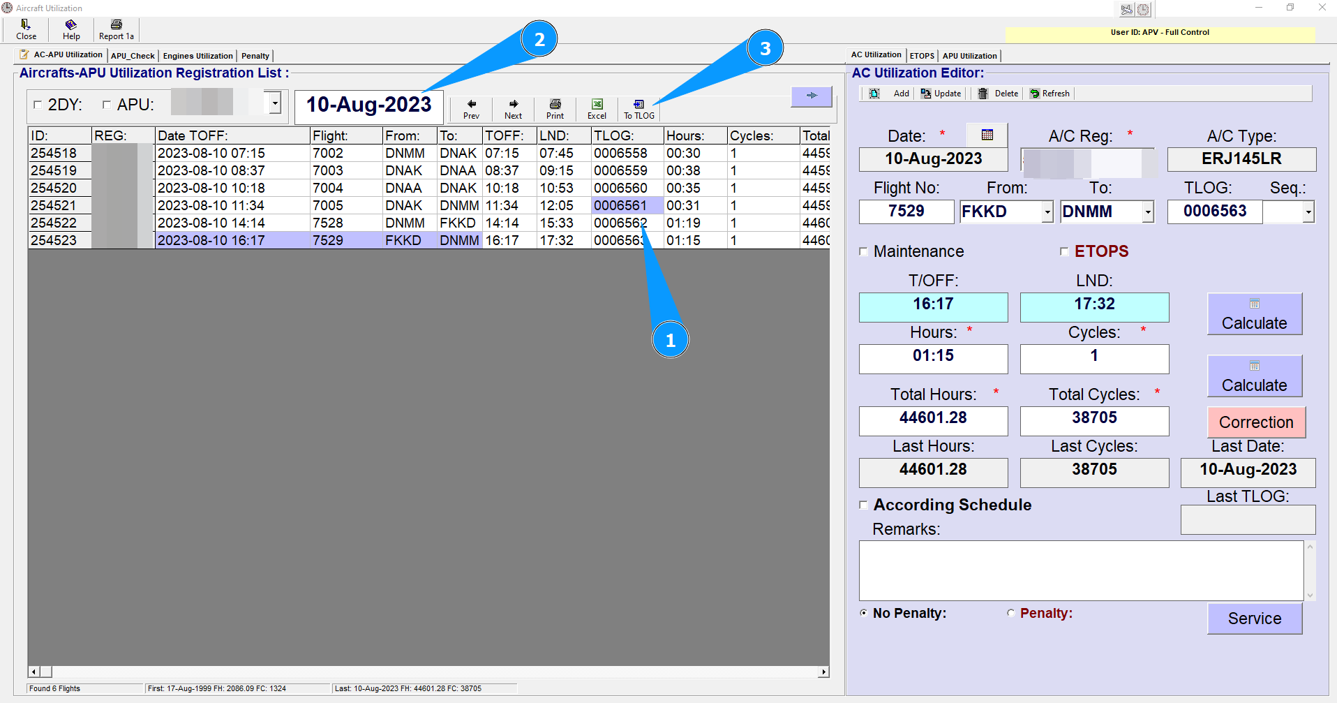 3. Press Button «To TLOG» Transfer Data to Technical LOG.