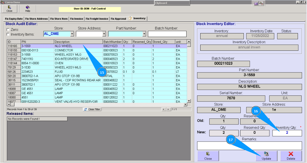 11. Check that a new line of inventory is created in the window "List of Inventories".Click on the line twice.