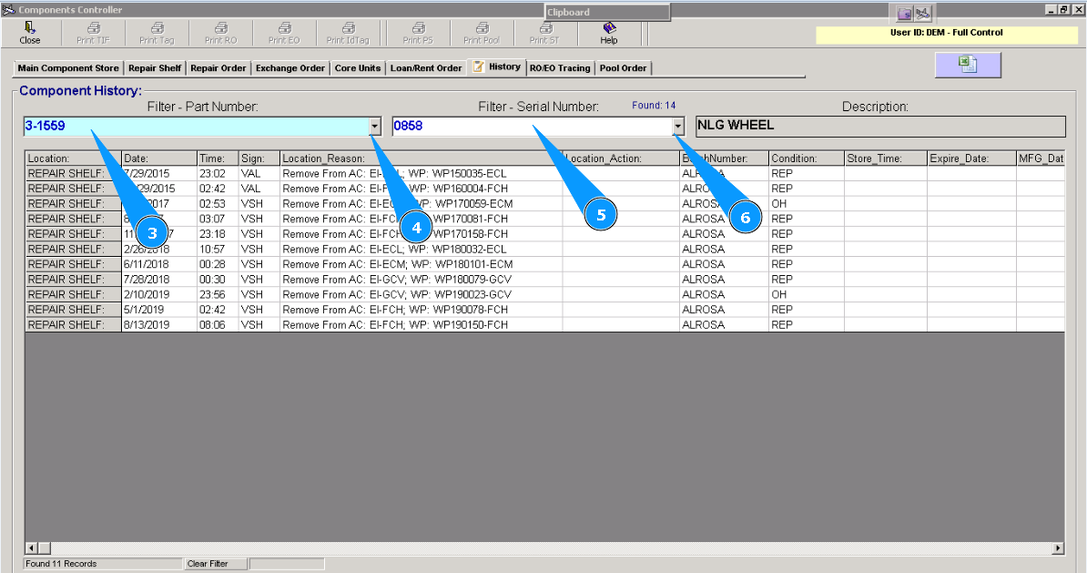 Note: Check the necessary history data in the opened lines.3. Enter the part number of component in the searching field "Filter-Part Number" and press on the button "Enter" of your keyboard.