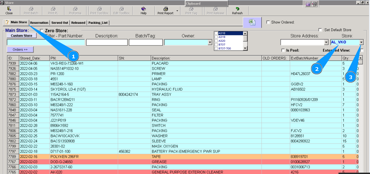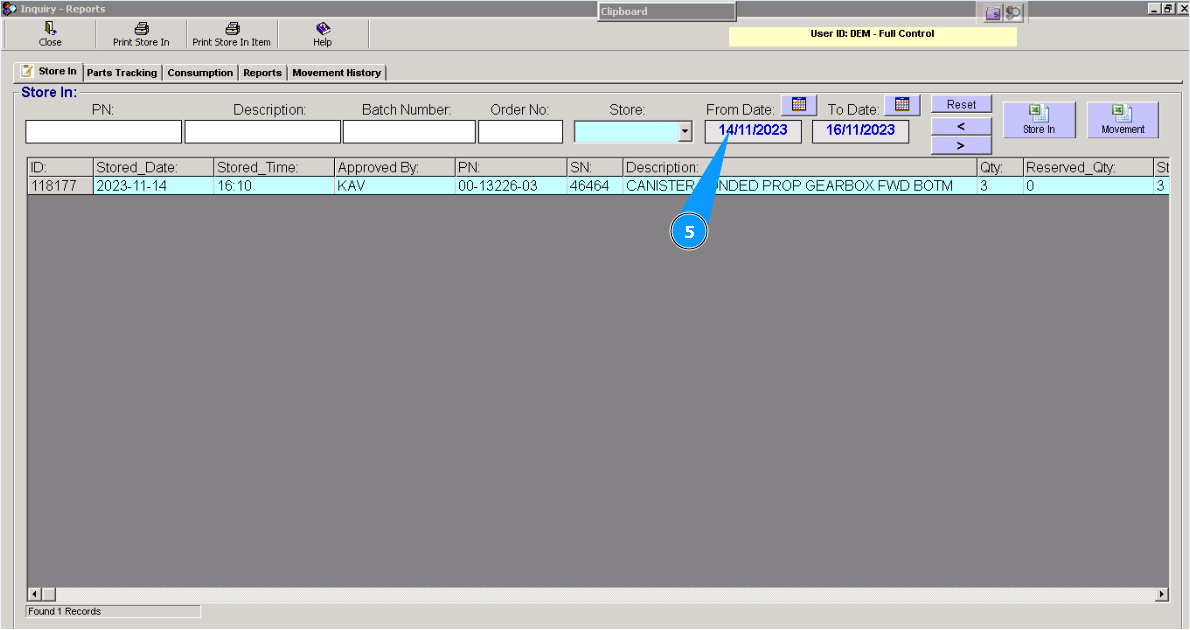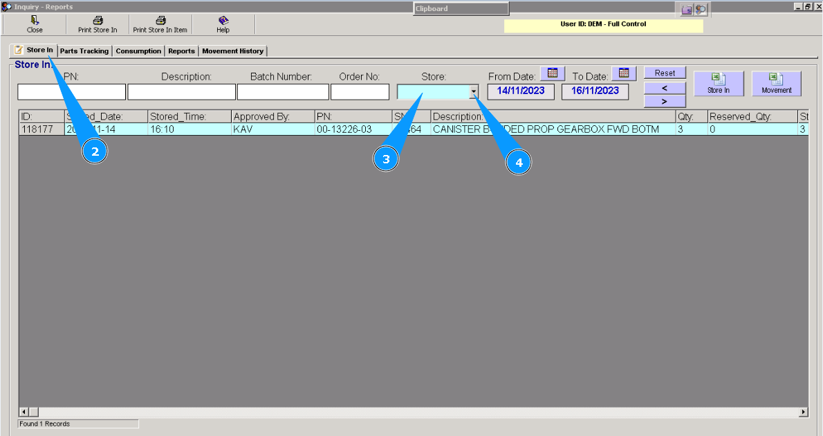 1. For checking components previously received to store, go to submodule "Inquiry Reports".