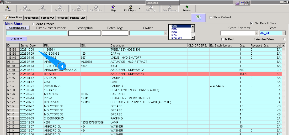 4. All components are sorted by receiving date. Last-received items are at the top.
