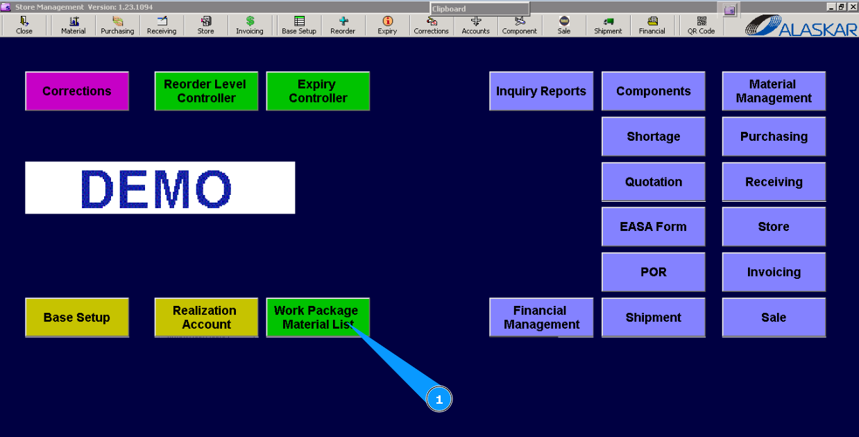 1. For checking the availability of materials from WP in stores, go to submodule "Work Package Material List".